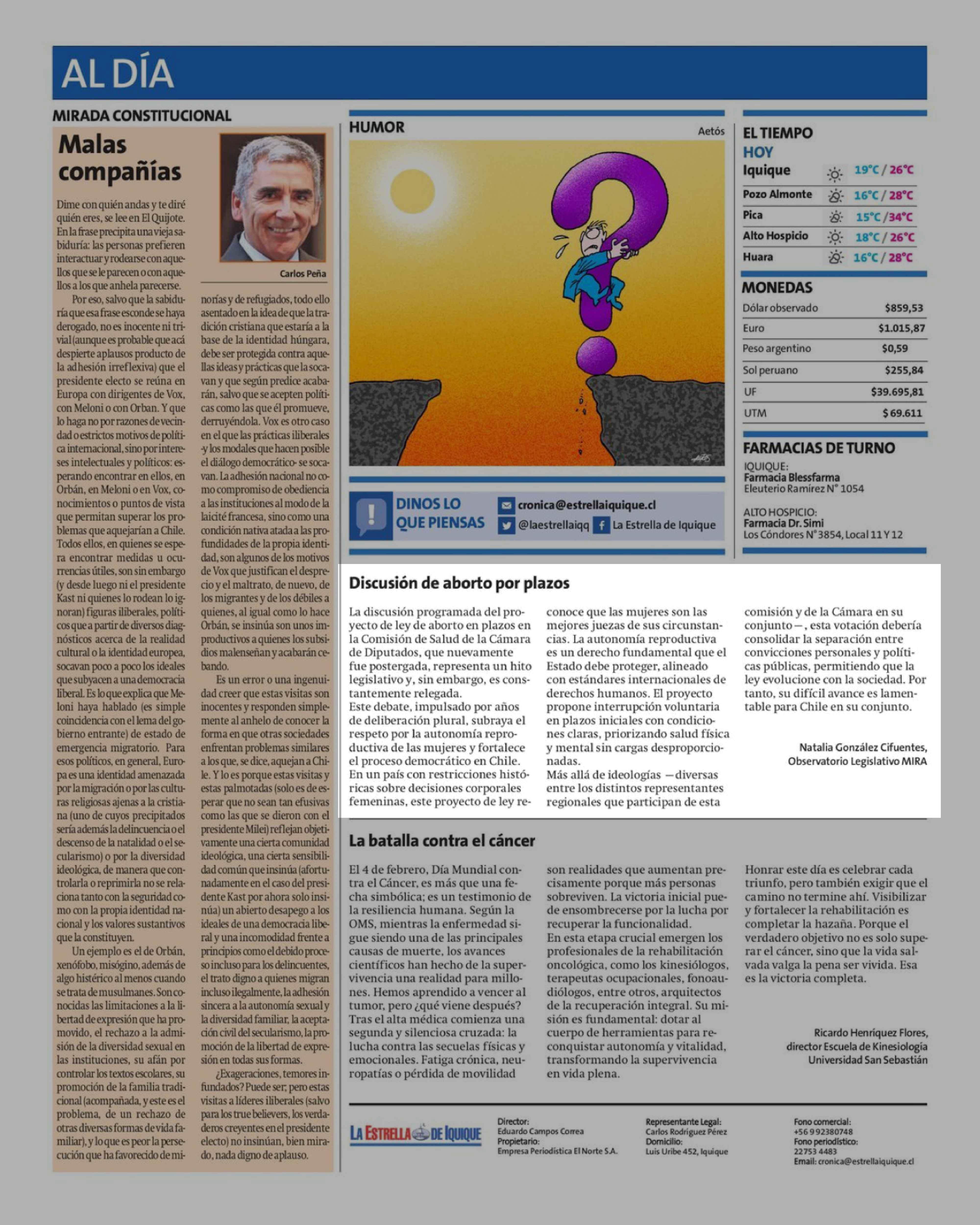 Cartas: Discusión de aborto por plazos 04-02-2026 La Estrella de Iquique |