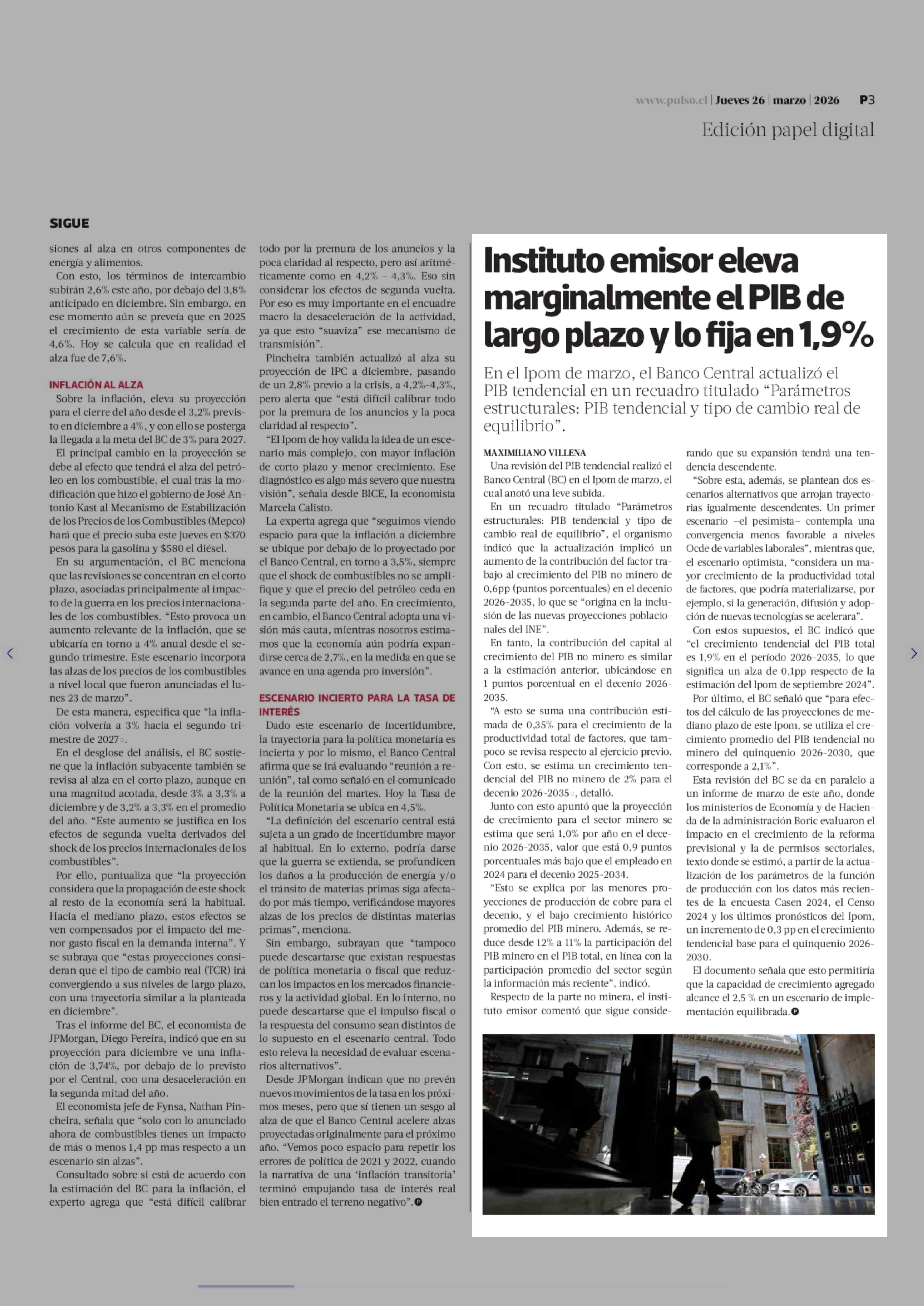 Título: Instituto emisor eleva marginalmente el PIB de largo plazo y lo fija en 1,9%