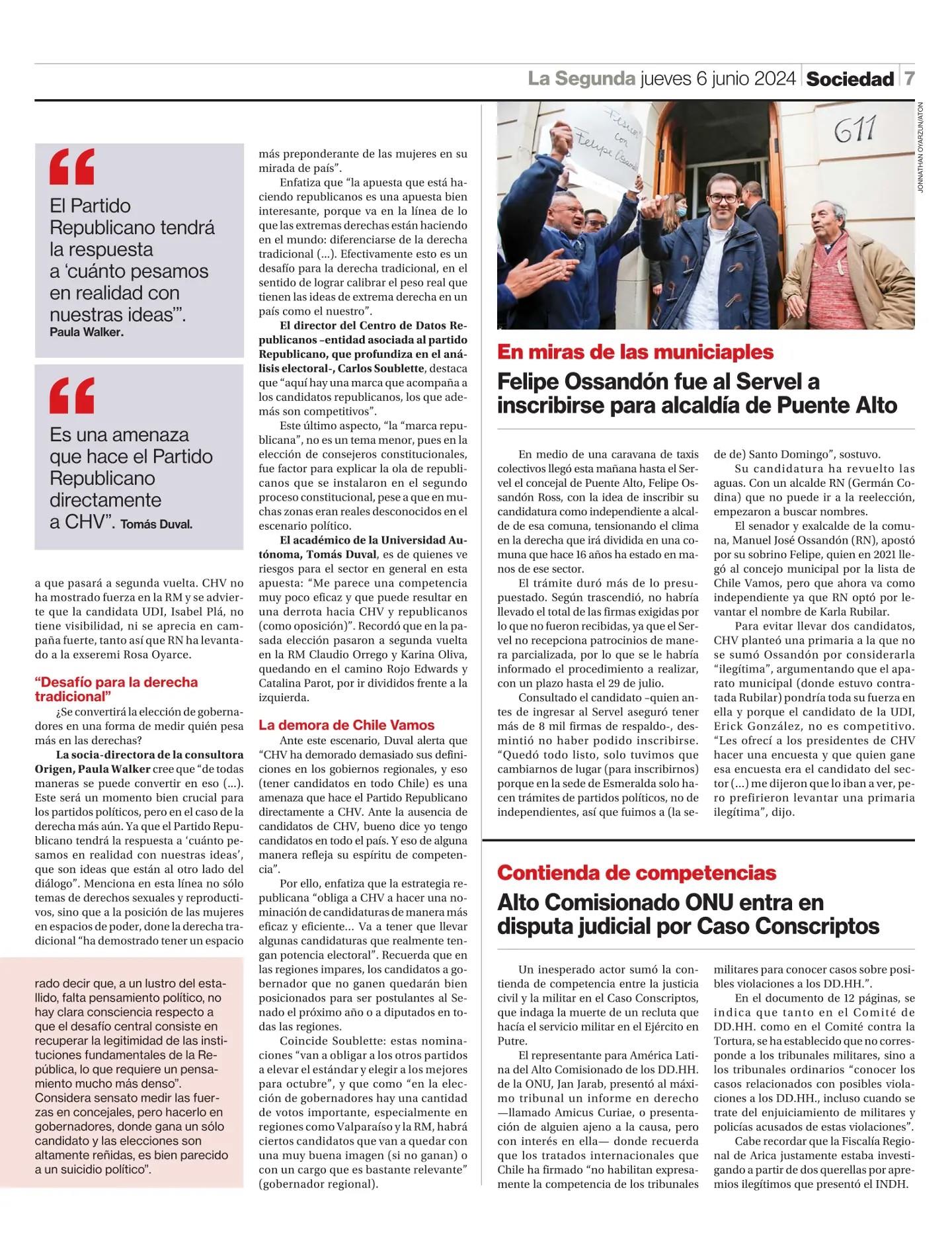 Republicanos lanza candidatos a gobernador en 14 regiones y amenaza a Chile Vamos 06-06-2024 La Segunda |