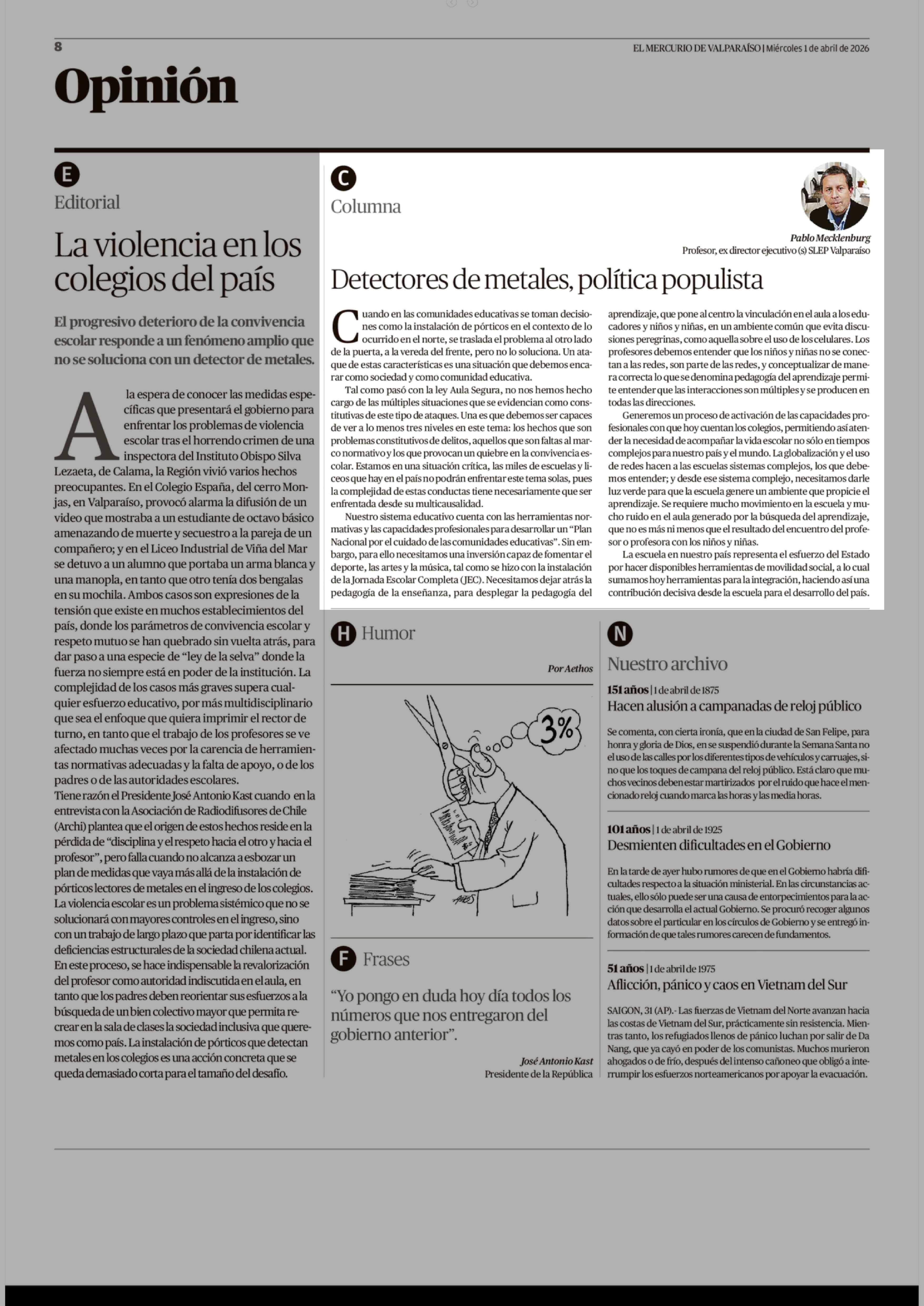 Fecha: 01-04-2026 Sector: Columnas de Opinión Región: Región de Valparaíso