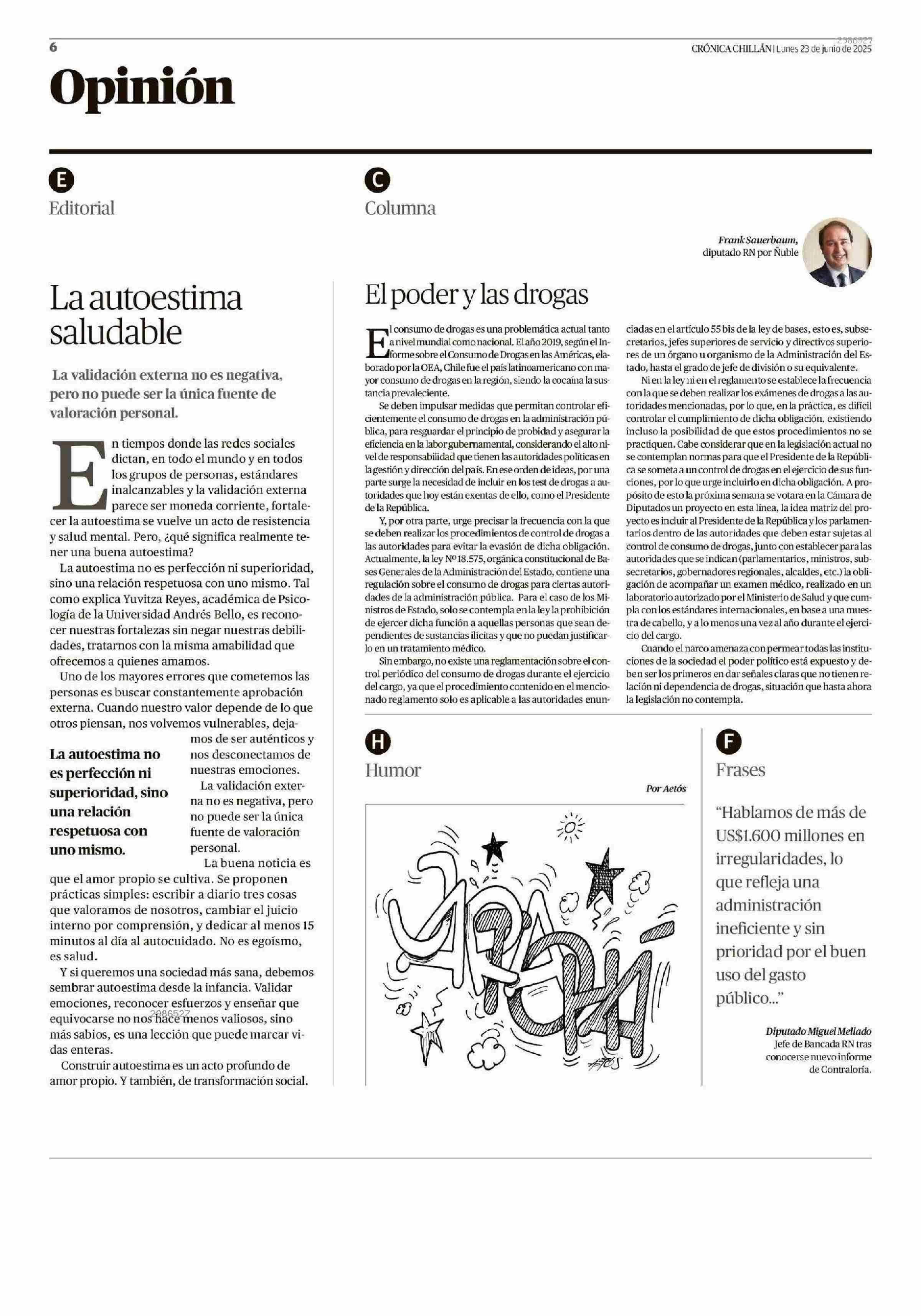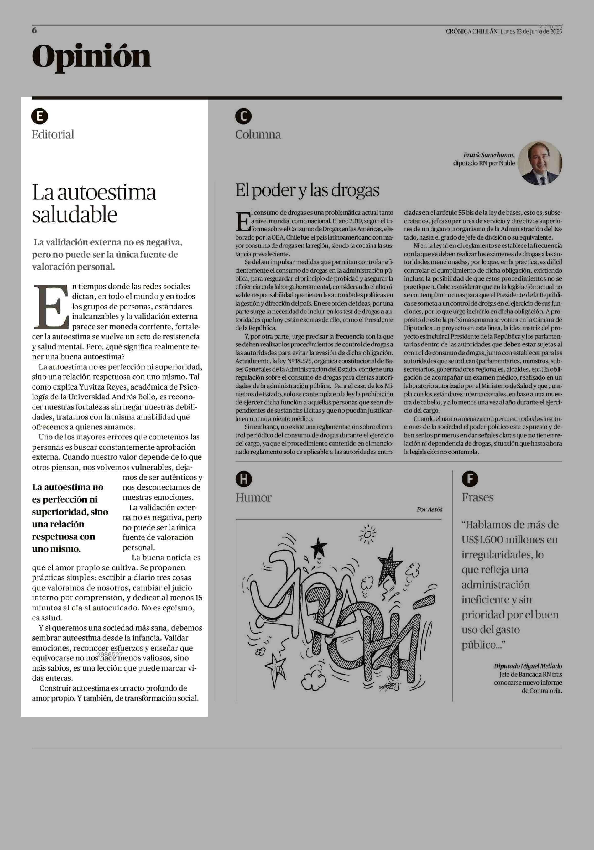 Editorial: La autoestima saludable 23-06-2025 Crónica de Chillán |