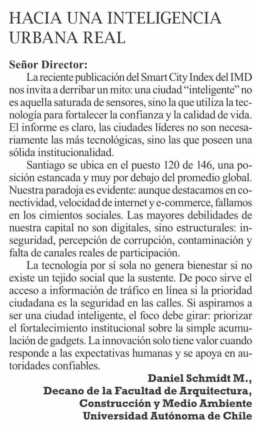 Cartas: Hacia una inteligencia urbana real 07-04-2026 El Pingüino |