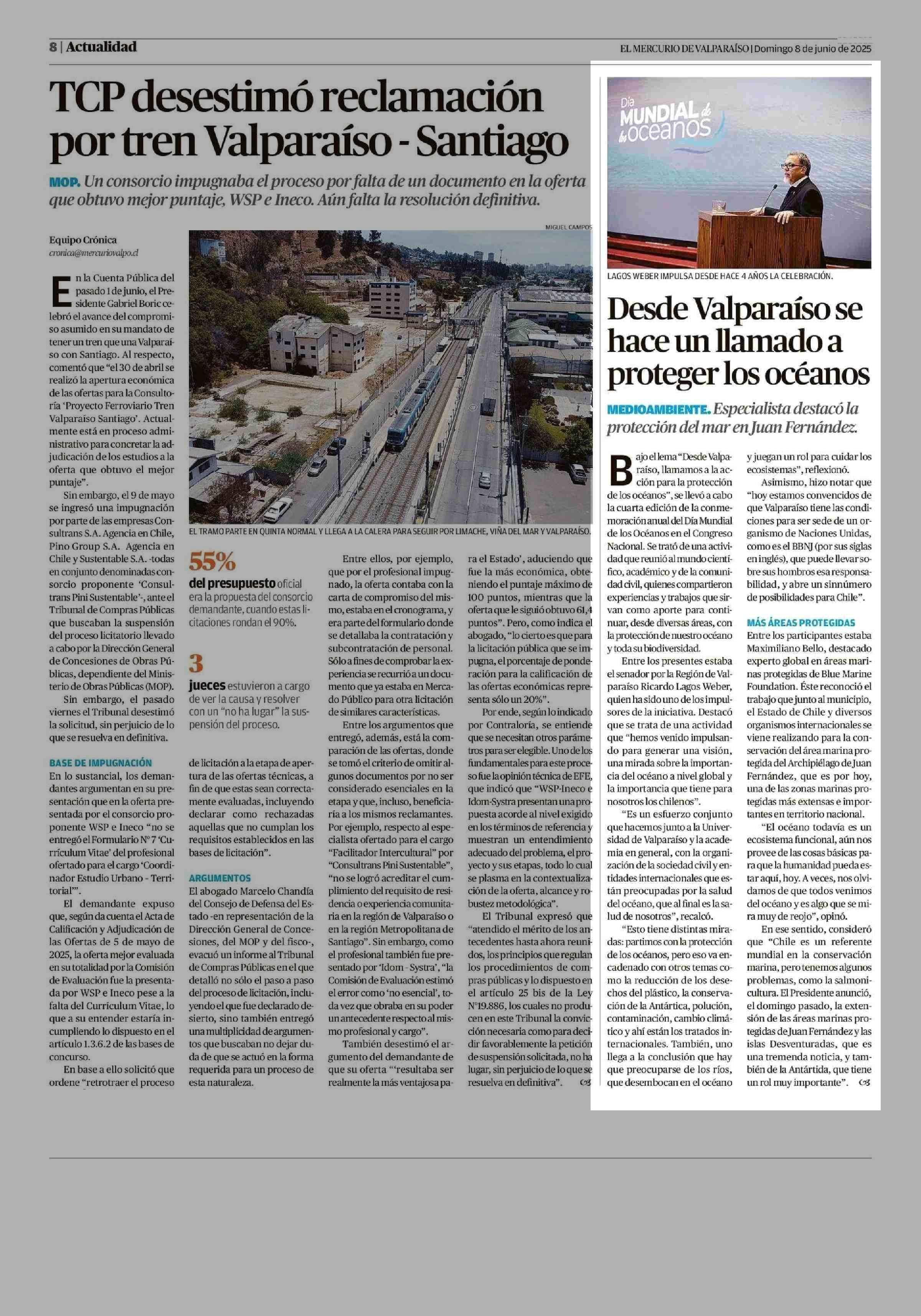 Desde Valparaíso se proteger los océanos hace un llamado a 08-06-2025 El Mercurio de Valparaíso |