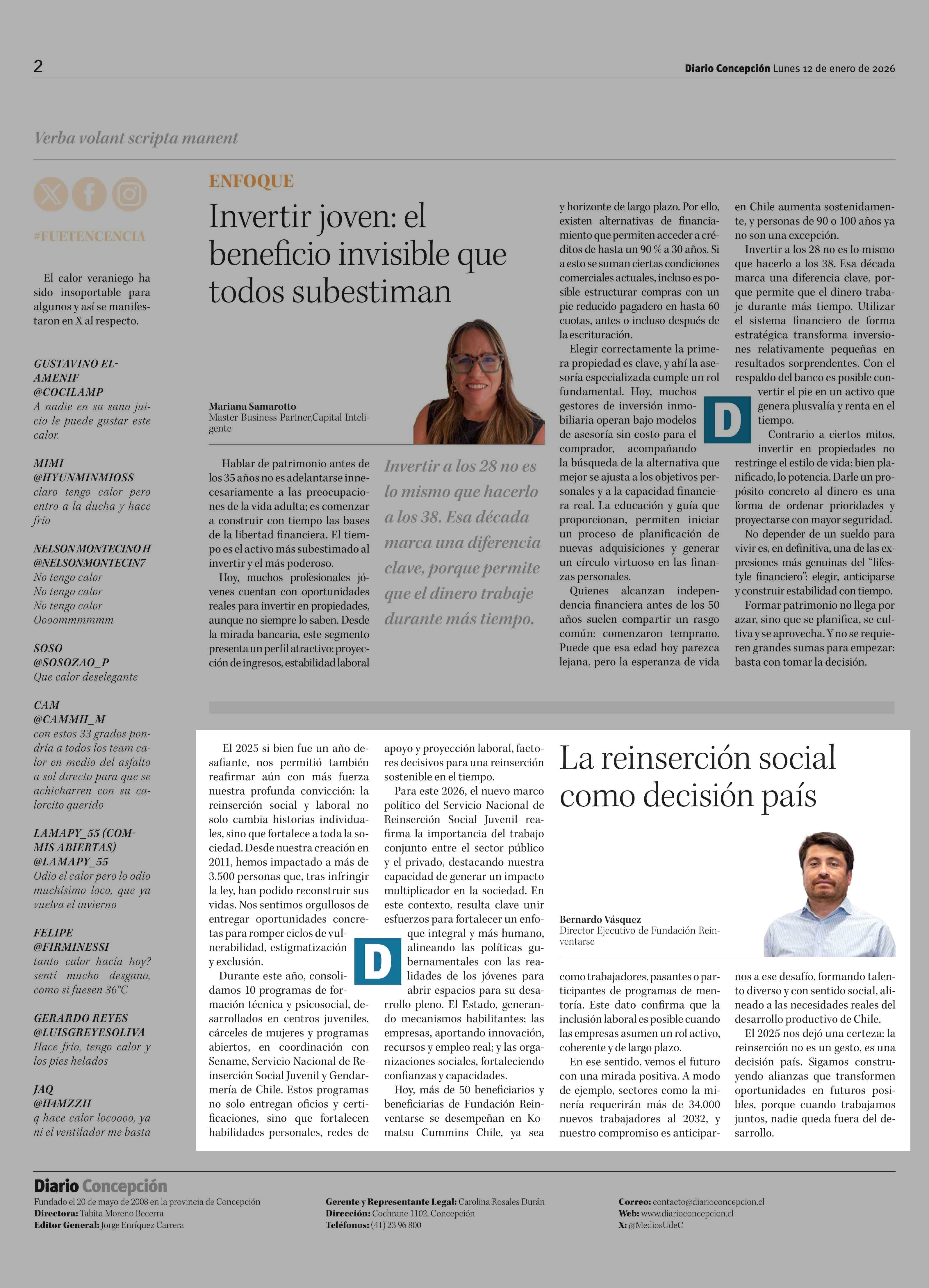 Columnas de Opinión: La reinserción social como decisión país 12-01-2026 Diario Concepción |