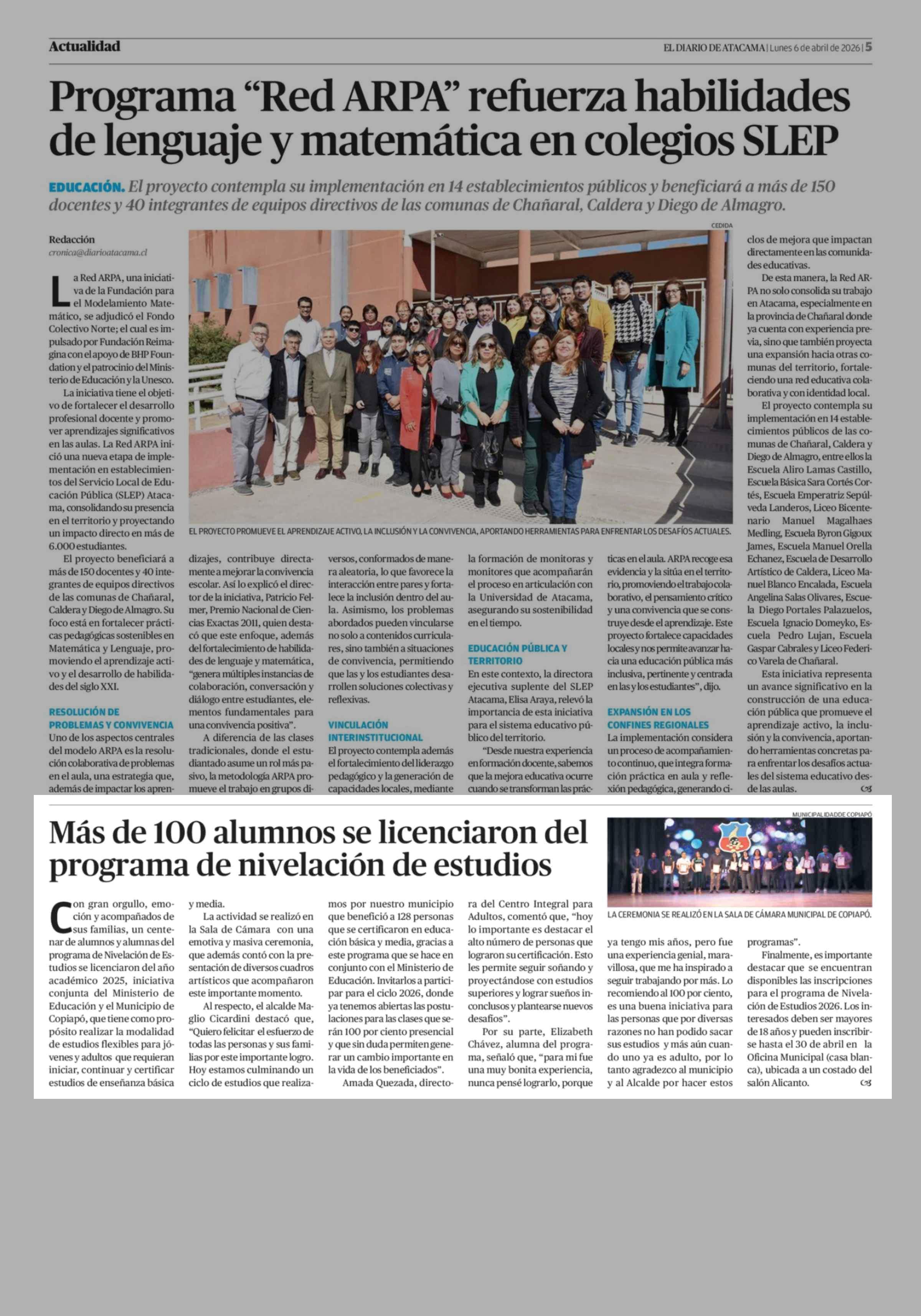 Más de 100 alumnos se licenciaron del programa de nivelación de estudios 06-04-2026 El Diario de Atacama |