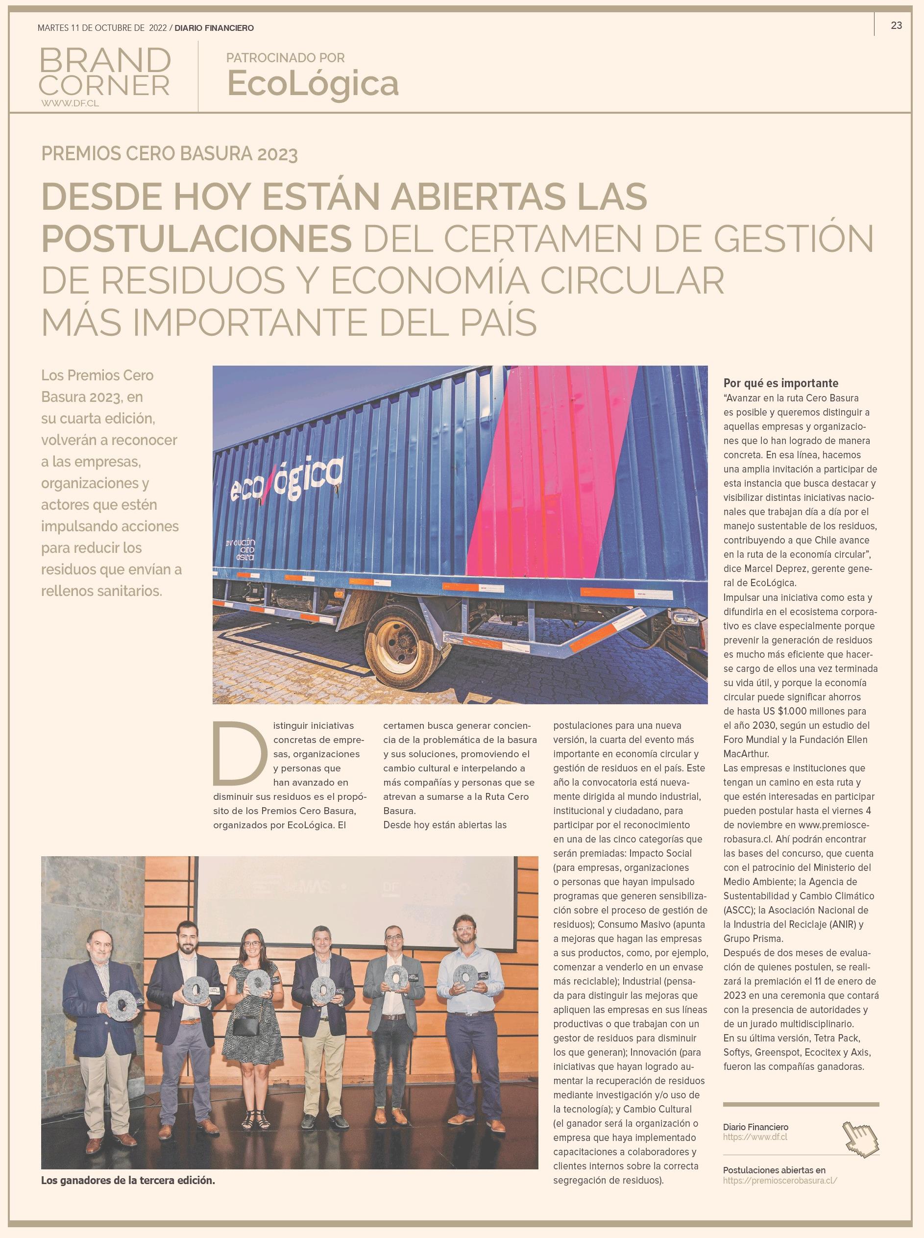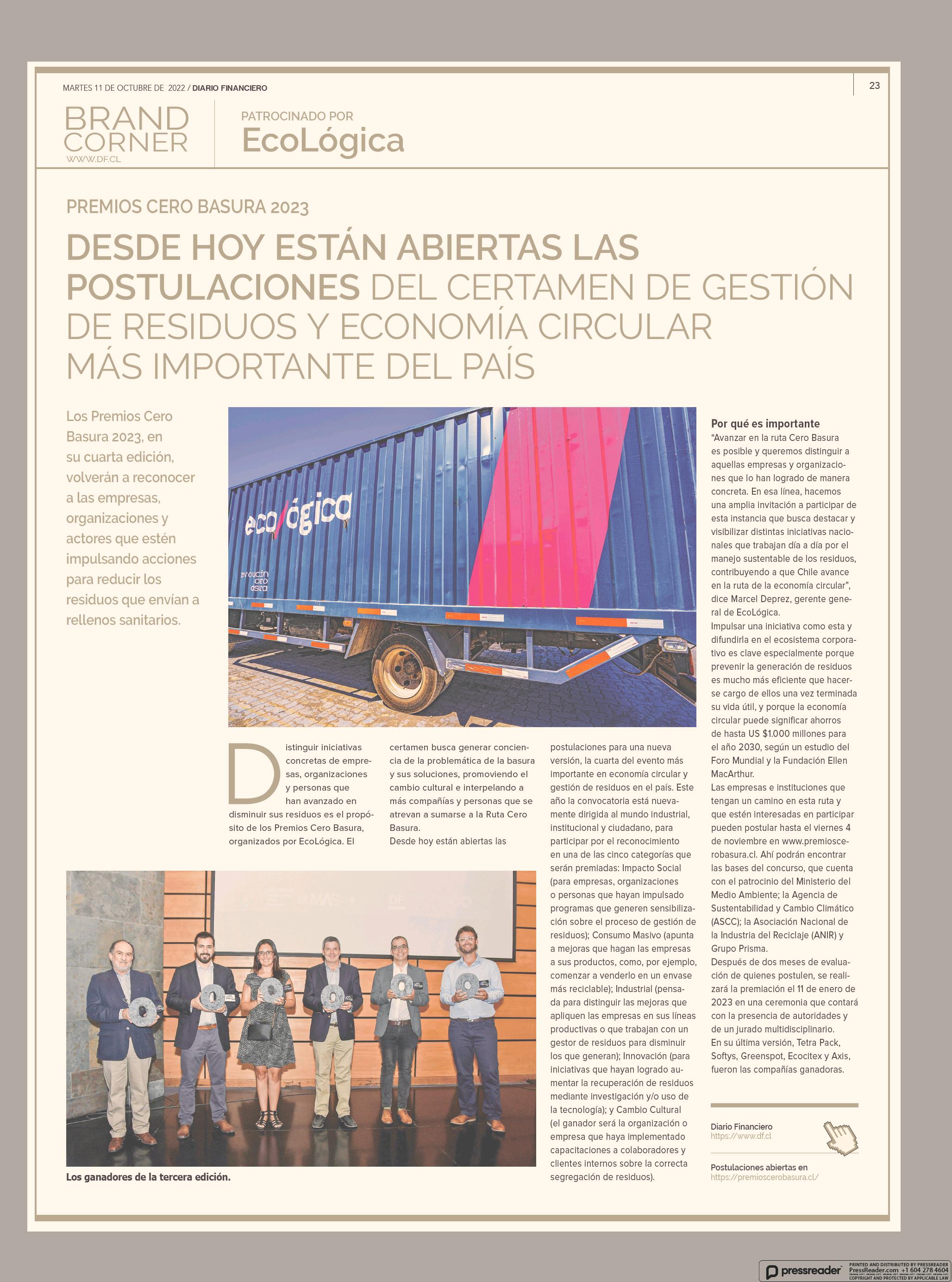 DESDE HOY ESTÁN ABIERTAS LAS POSTULACIONES DEL CERTAMEN DE GESTIÓN DE RESIDUOS Y ECONOMÍA CIRCULAR MÁS IMPORTANTE DEL PAÍS 11-10-2022 Diario Financiero |