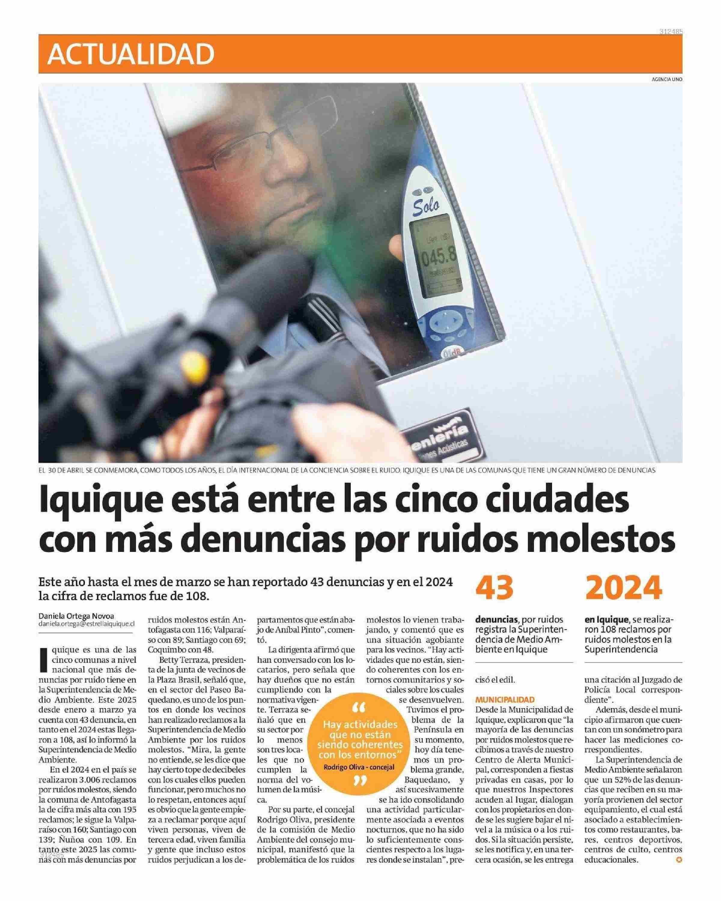 Iquique está entre las cinco ciudades con más denuncias por ruidos molestos 30-04-2025 La Estrella de Iquique |