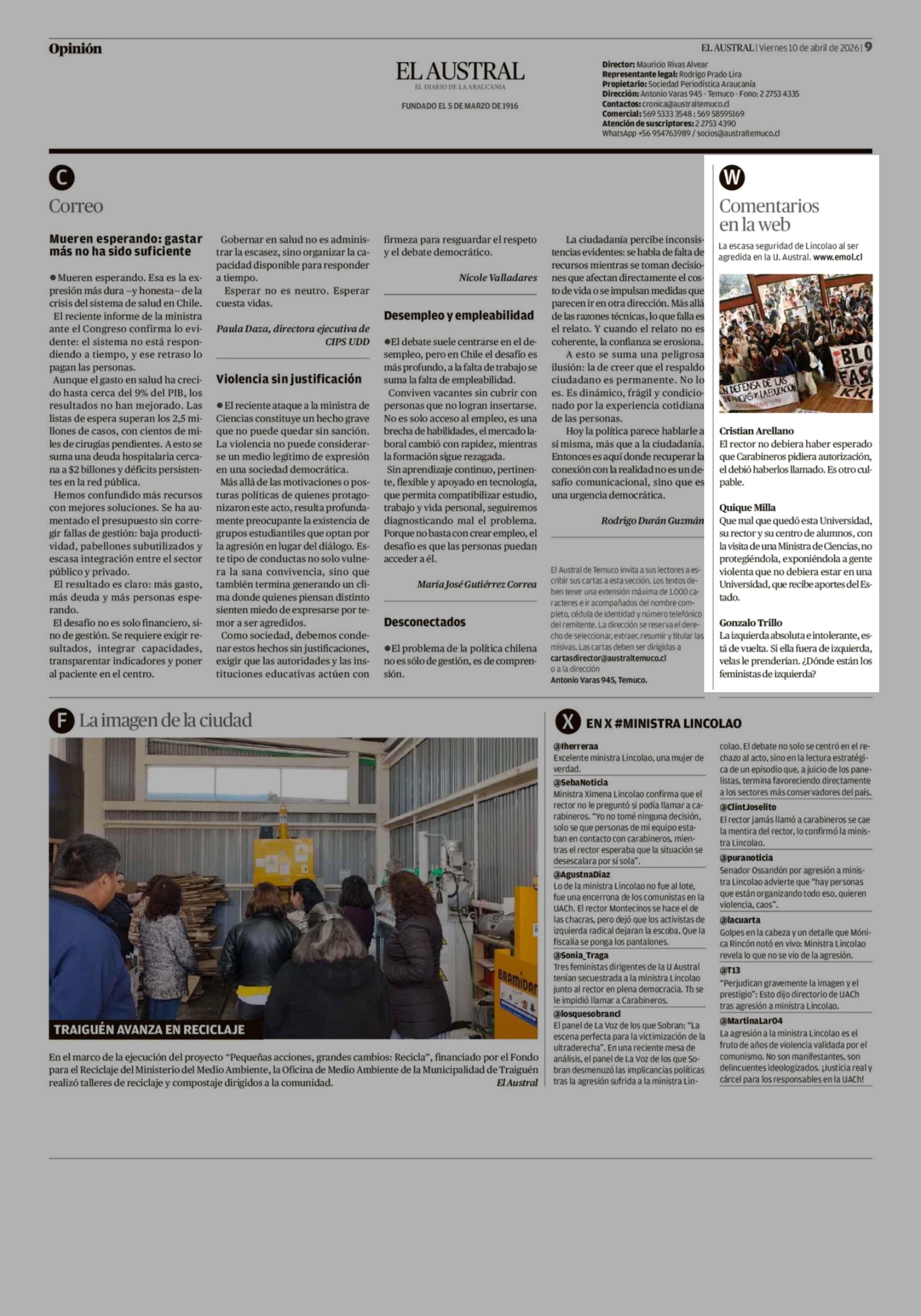 W Comentarios en la web 10-04-2026 El Austral de la Araucanía |
