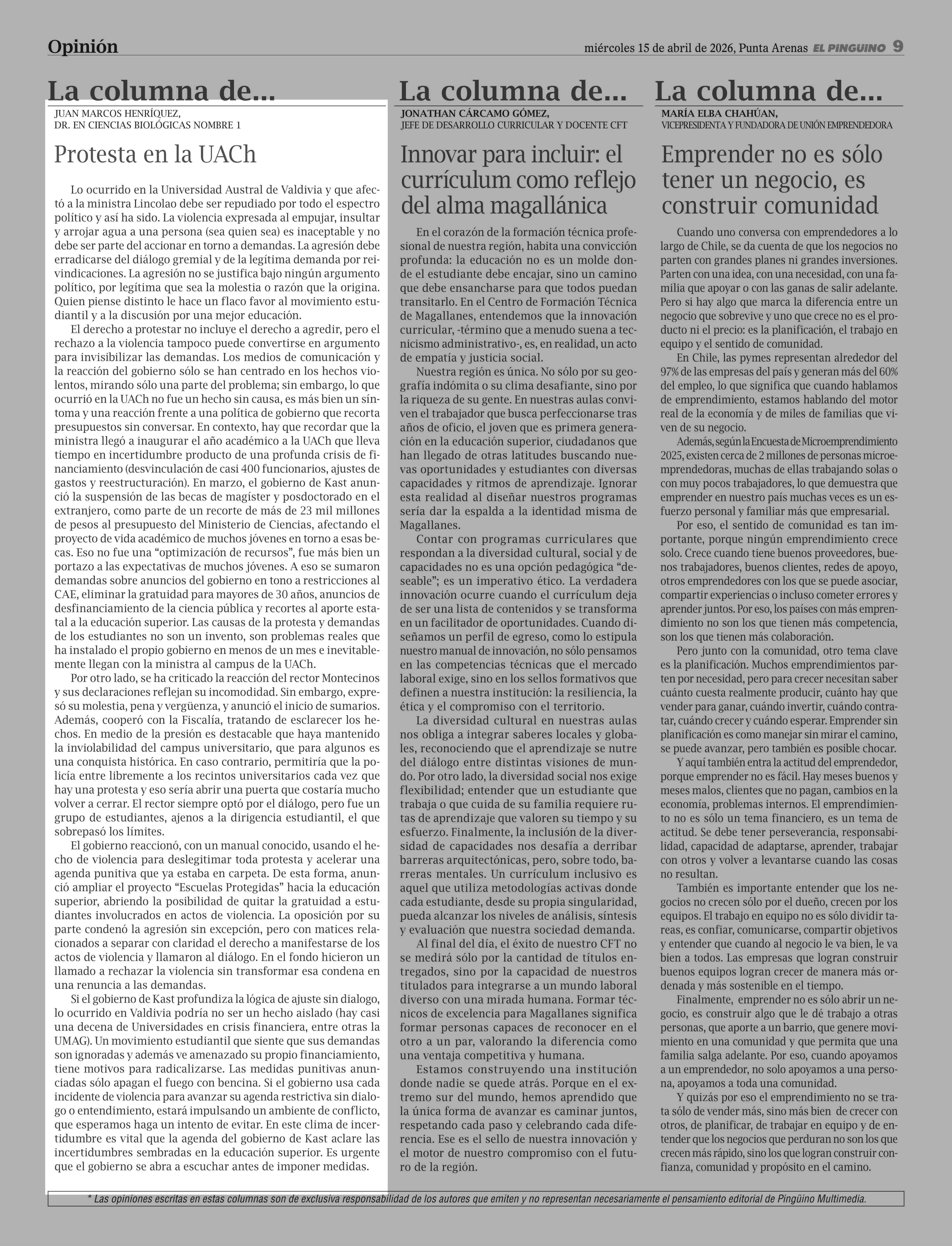 Columnas de Opinión: Protesta en la UACh 15-04-2026 El Pingüino |