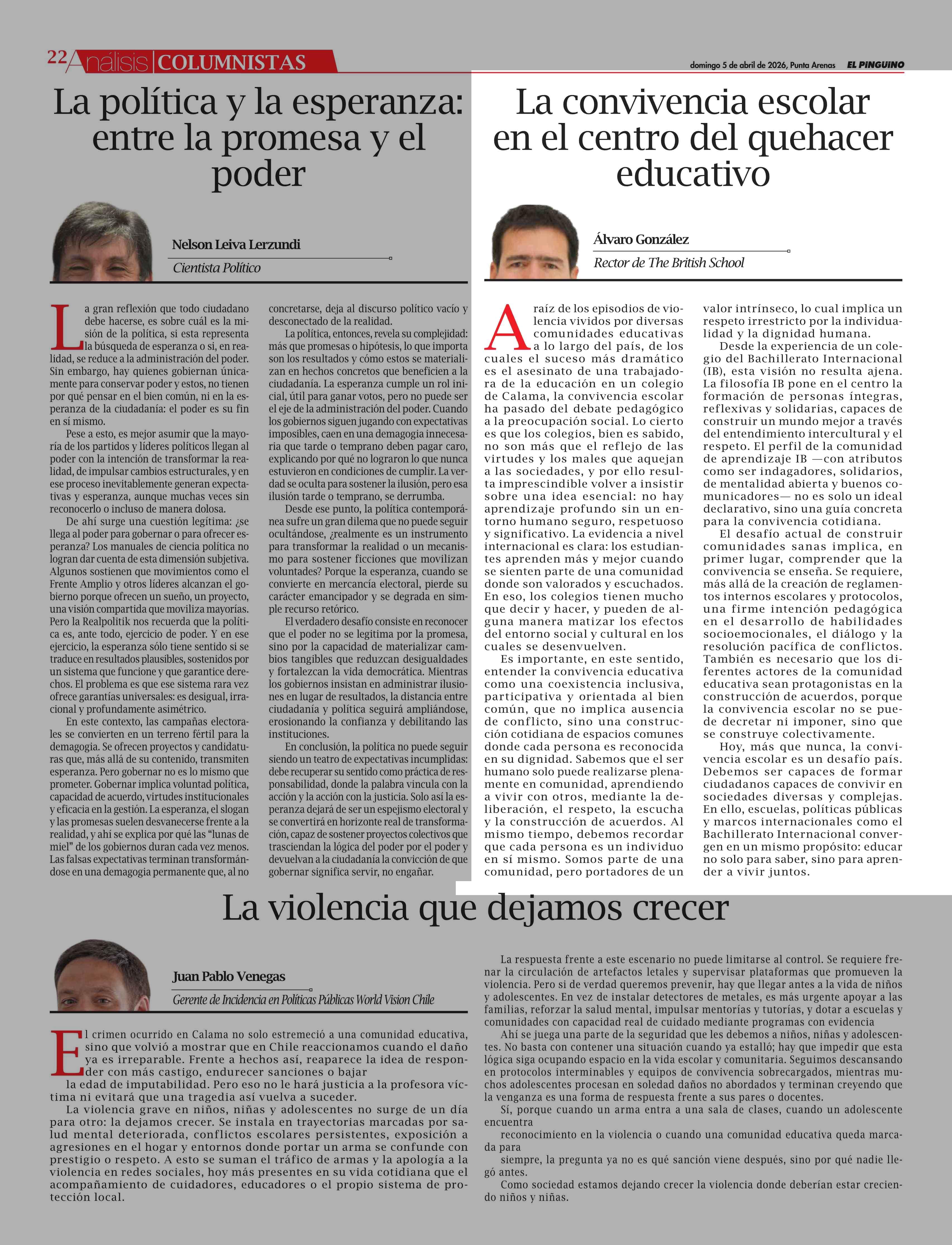 Fecha: 05-04-2026 Sector: Columnas de Opinión Región: Región de Magallanes y de la Antártica Chilena