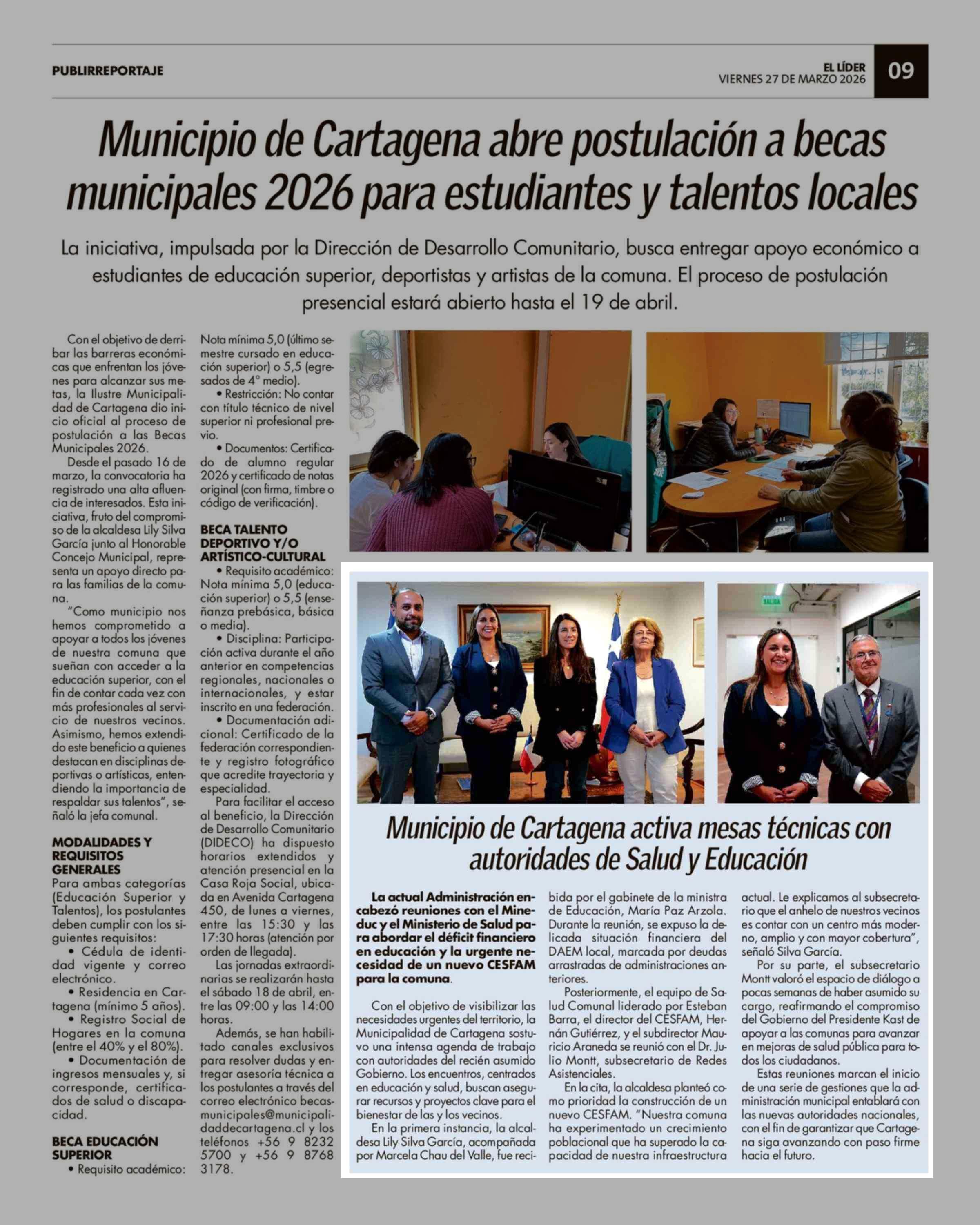Municipio de Cartagena activa mesas técnicas con autoridades de Salud y Educación 27-03-2026 El Líder |