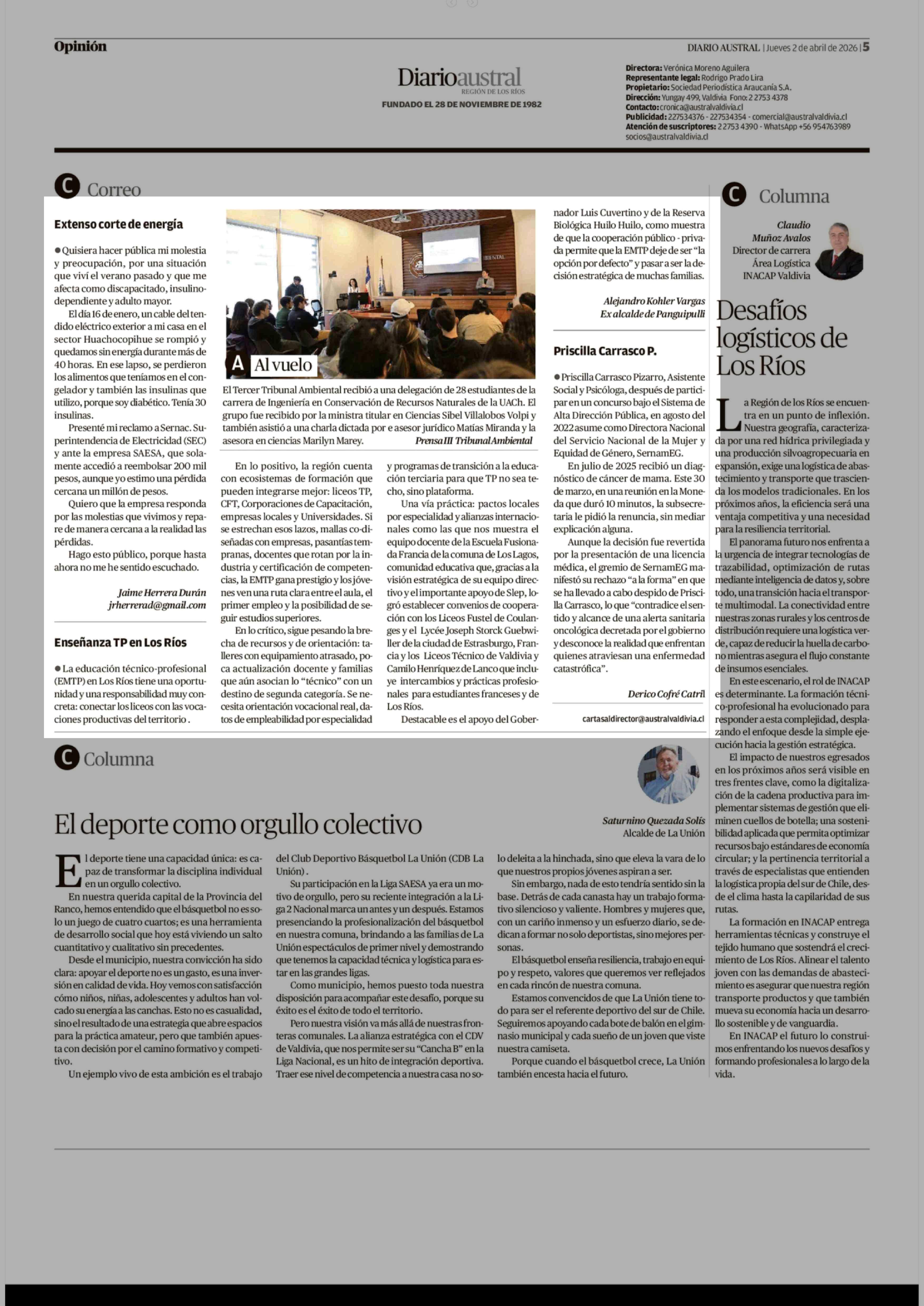 Cartas: Enseñanza TP en Los Ríos 02-04-2026 Diario Austral Región de Los Ríos |