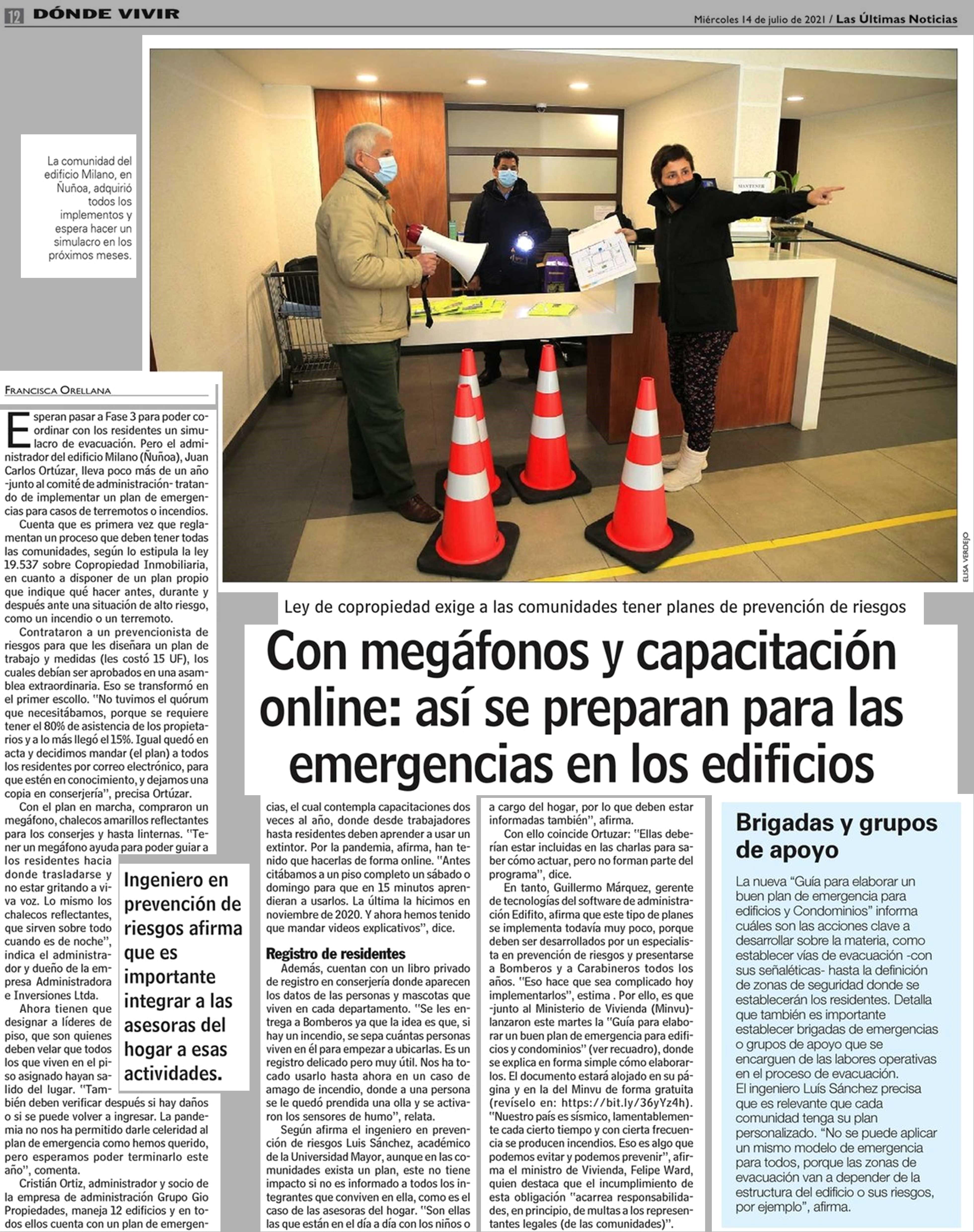 Con megáfonos y capacitación online: así se preparan para las emergencias en los edificios 14-07-2021 Las Últimas Noticias |