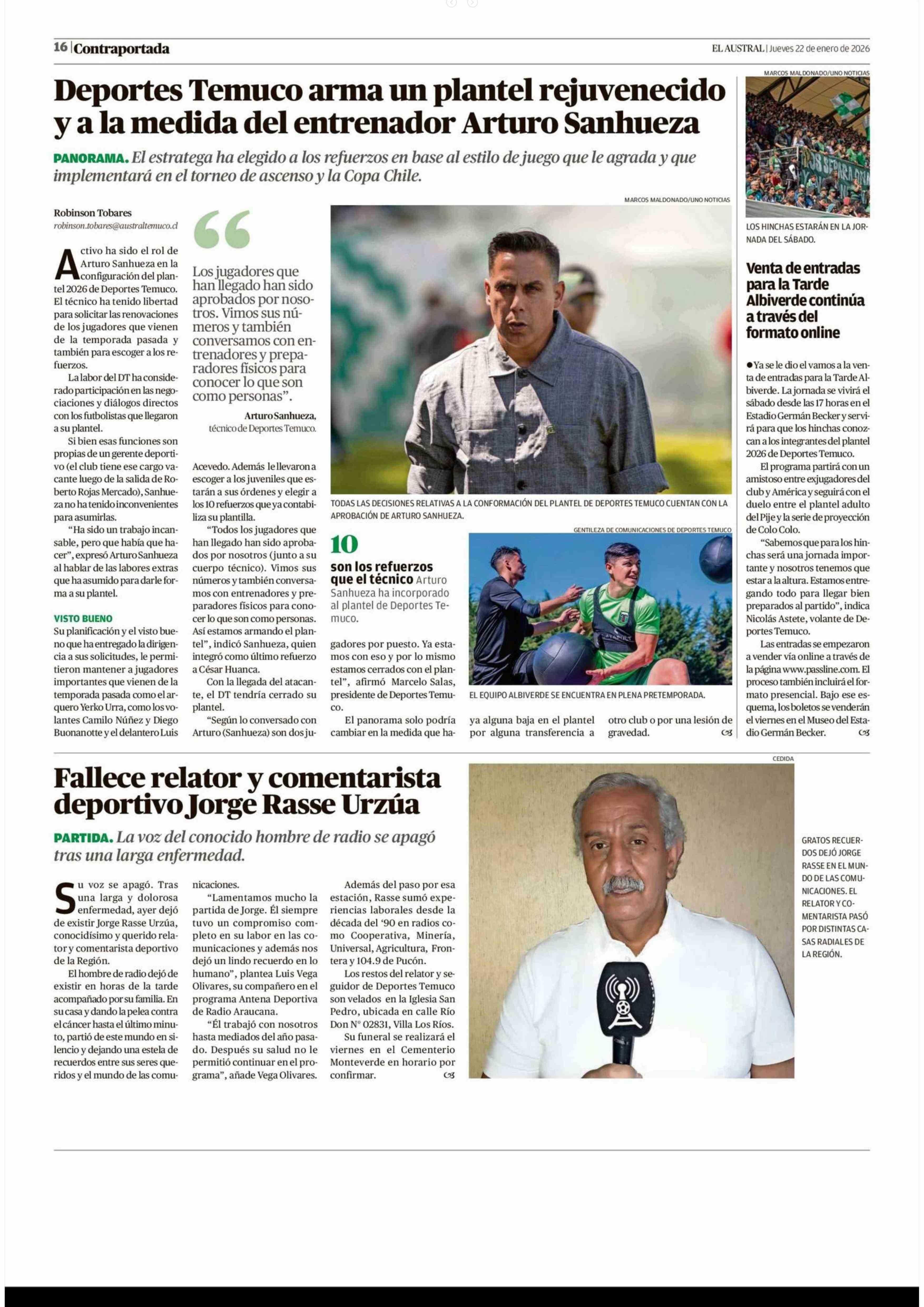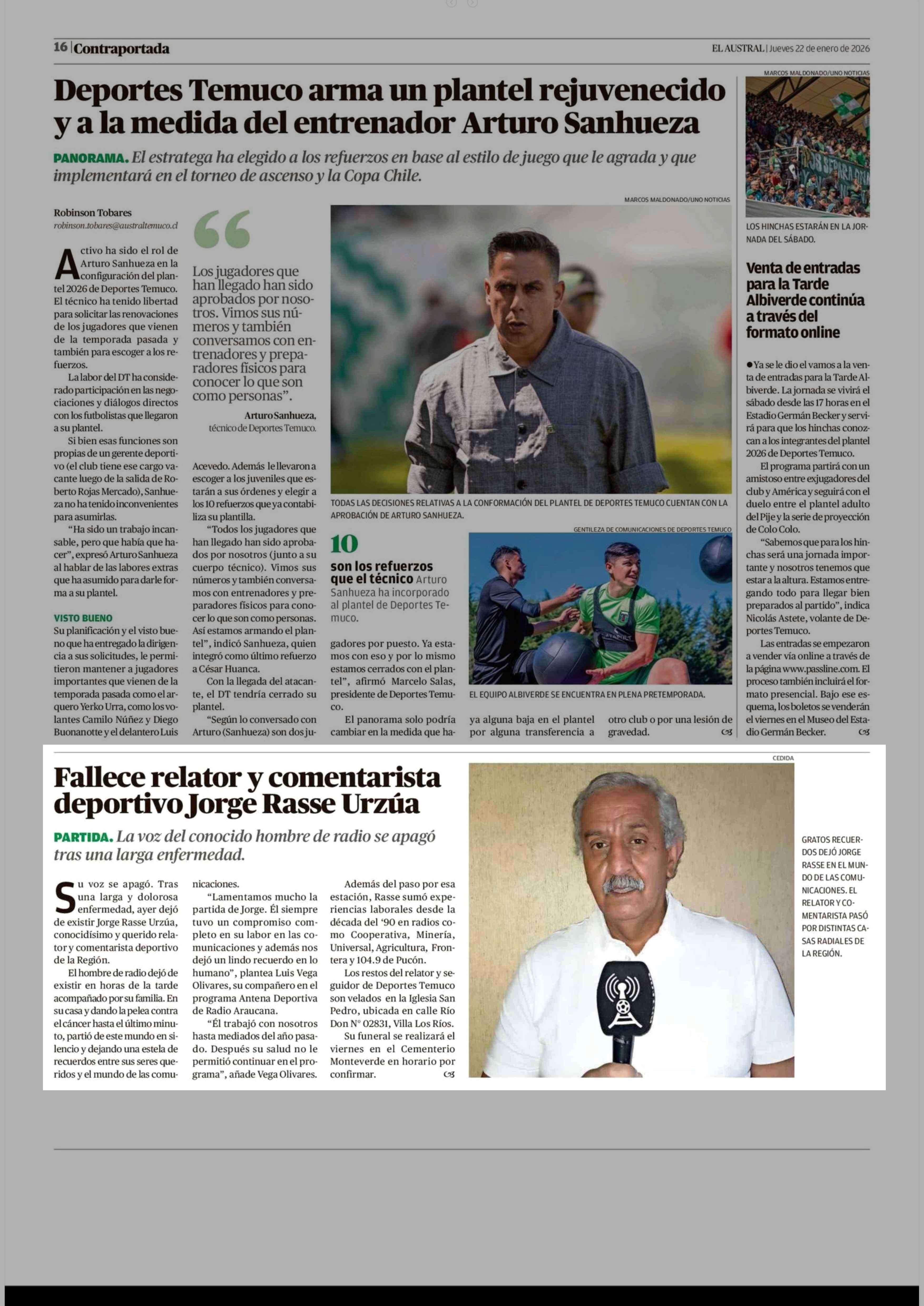 Fallece relator y comentarista deportivo Jorge Rasse Urzúa 22-01-2026 El Austral de la Araucanía |