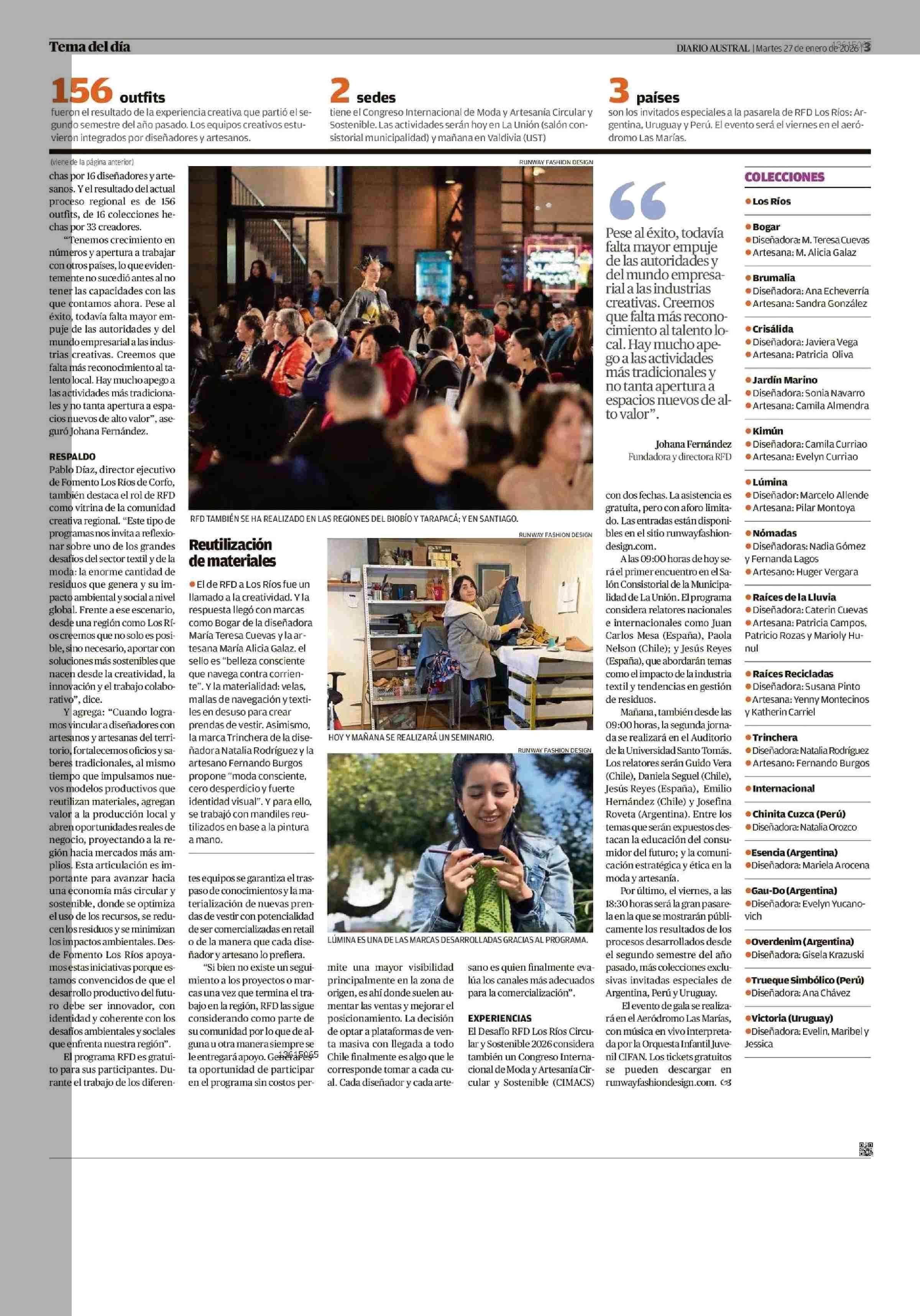 Runway Fashion Design escogió a Los Ríos como una gran pasarela 27-01-2026 Diario Austral Región de Los Ríos |
