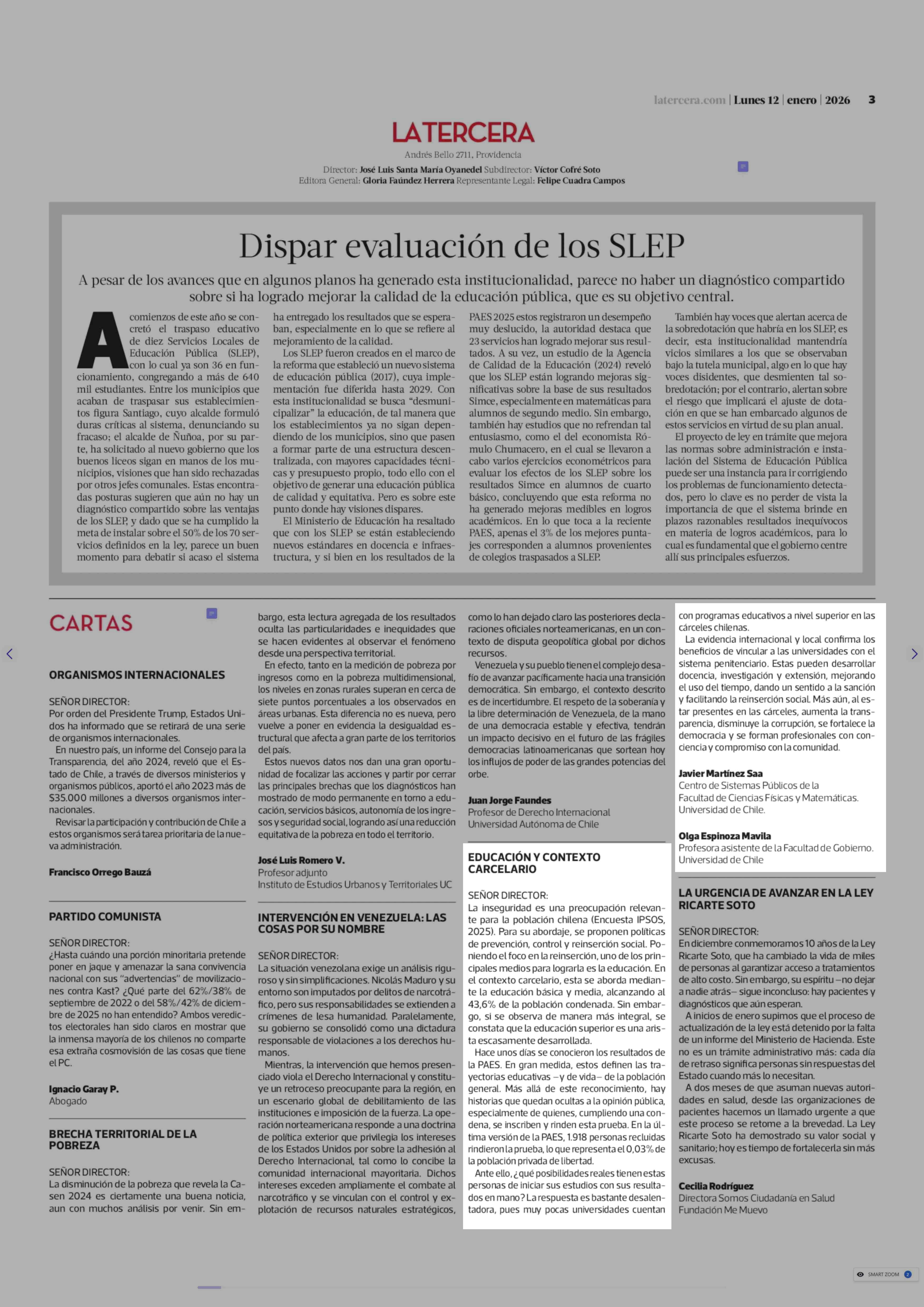 Fecha: 12-01-2026 Sector: Opinión - Cartas Región: Región Metropolitana de Santiago