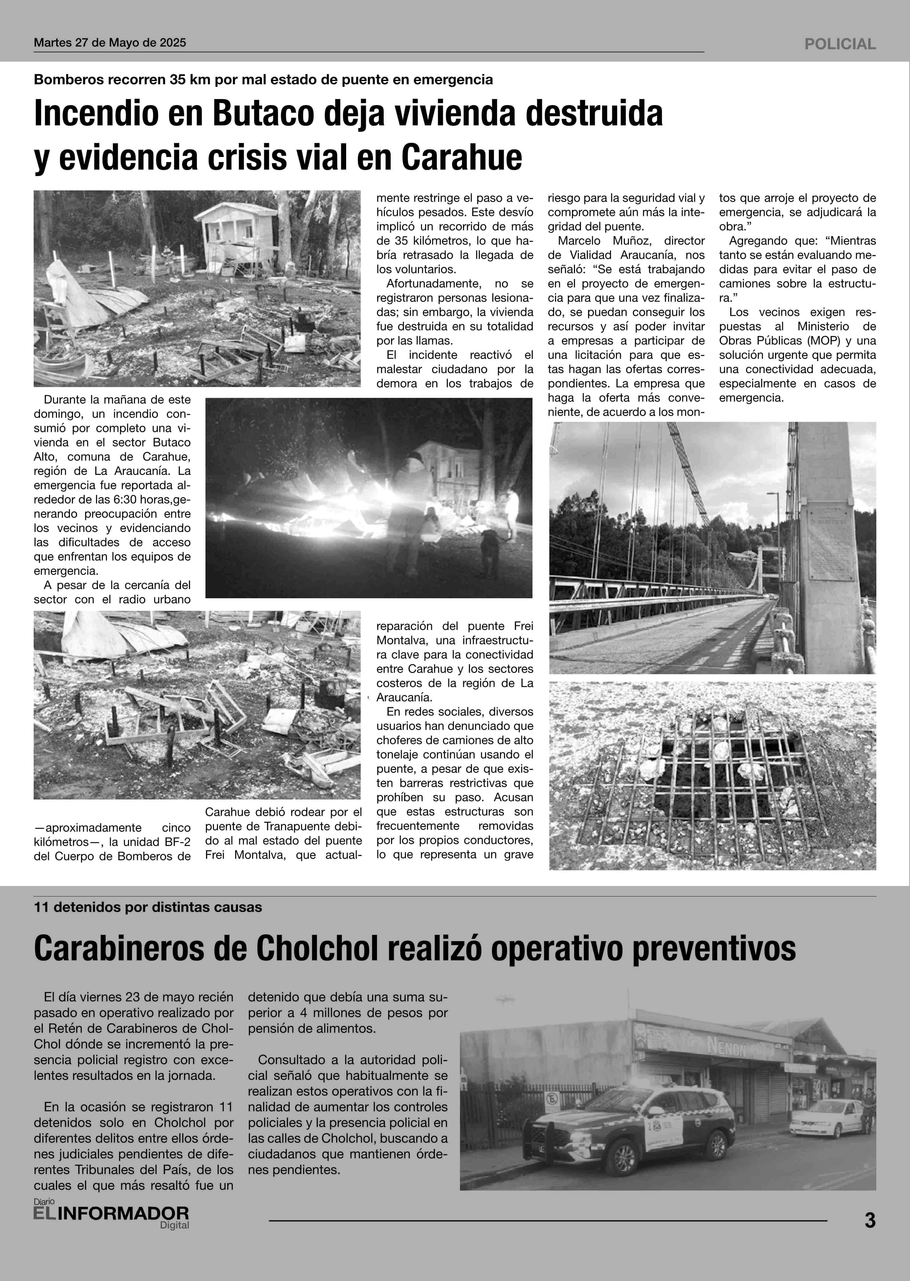 Incendio en Butaco deja vivienda destruida y evidencia crisis vial en Carahue 27-05-2025 El Informador |