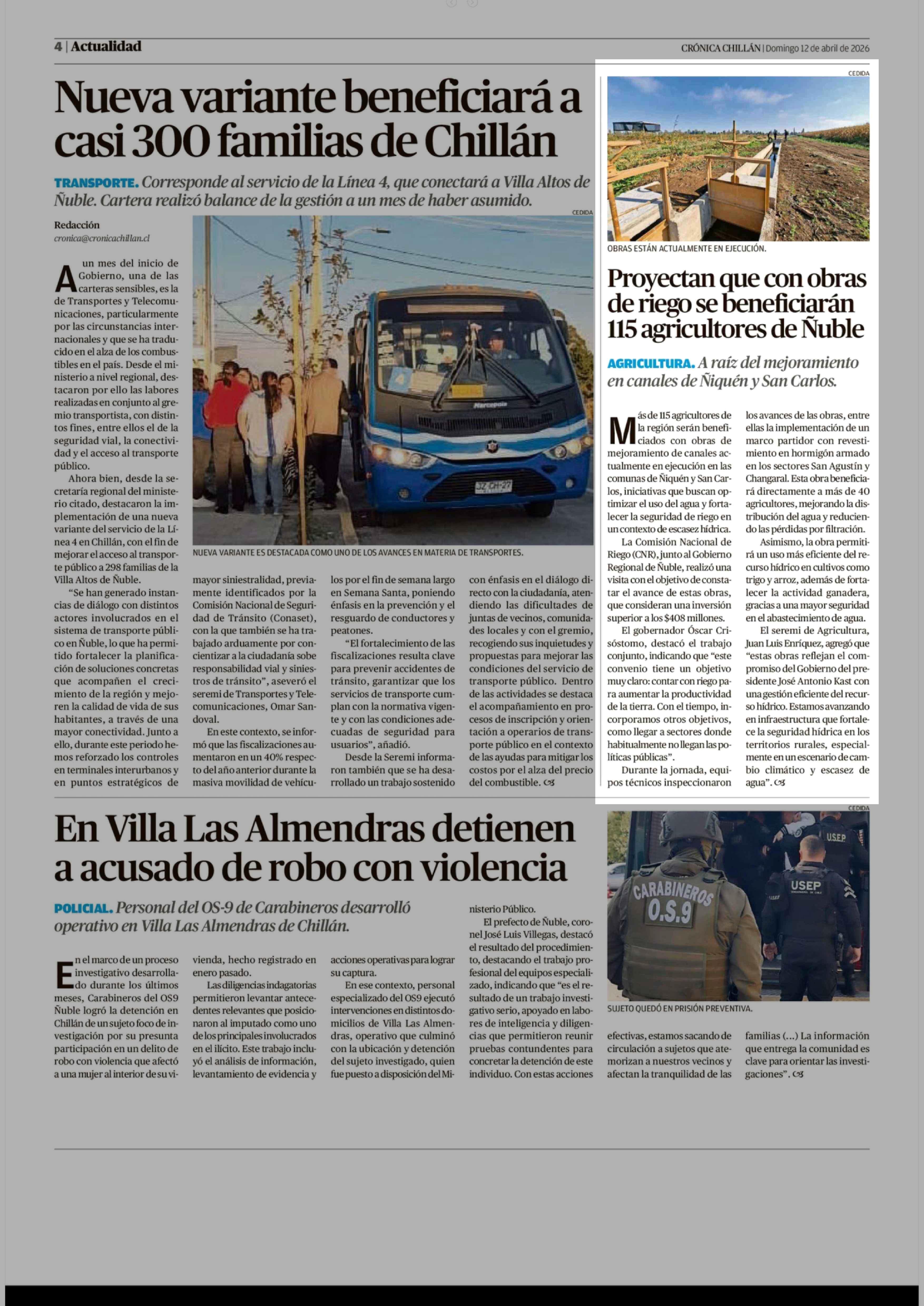 Fecha: 12-04-2026 Sector: Noticia general Región: Región del Ñuble