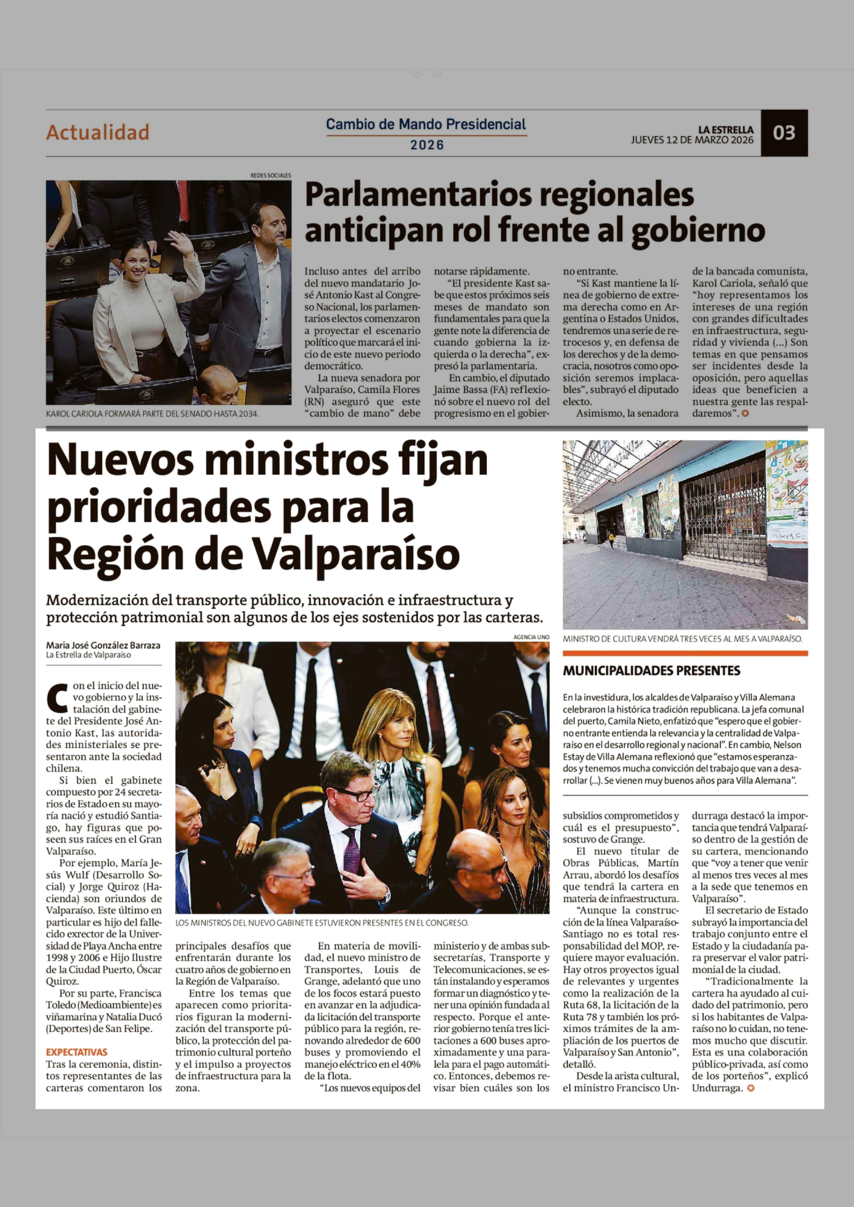 Título: Nuevos ministros fijan prioridades para la Región de Valparaíso