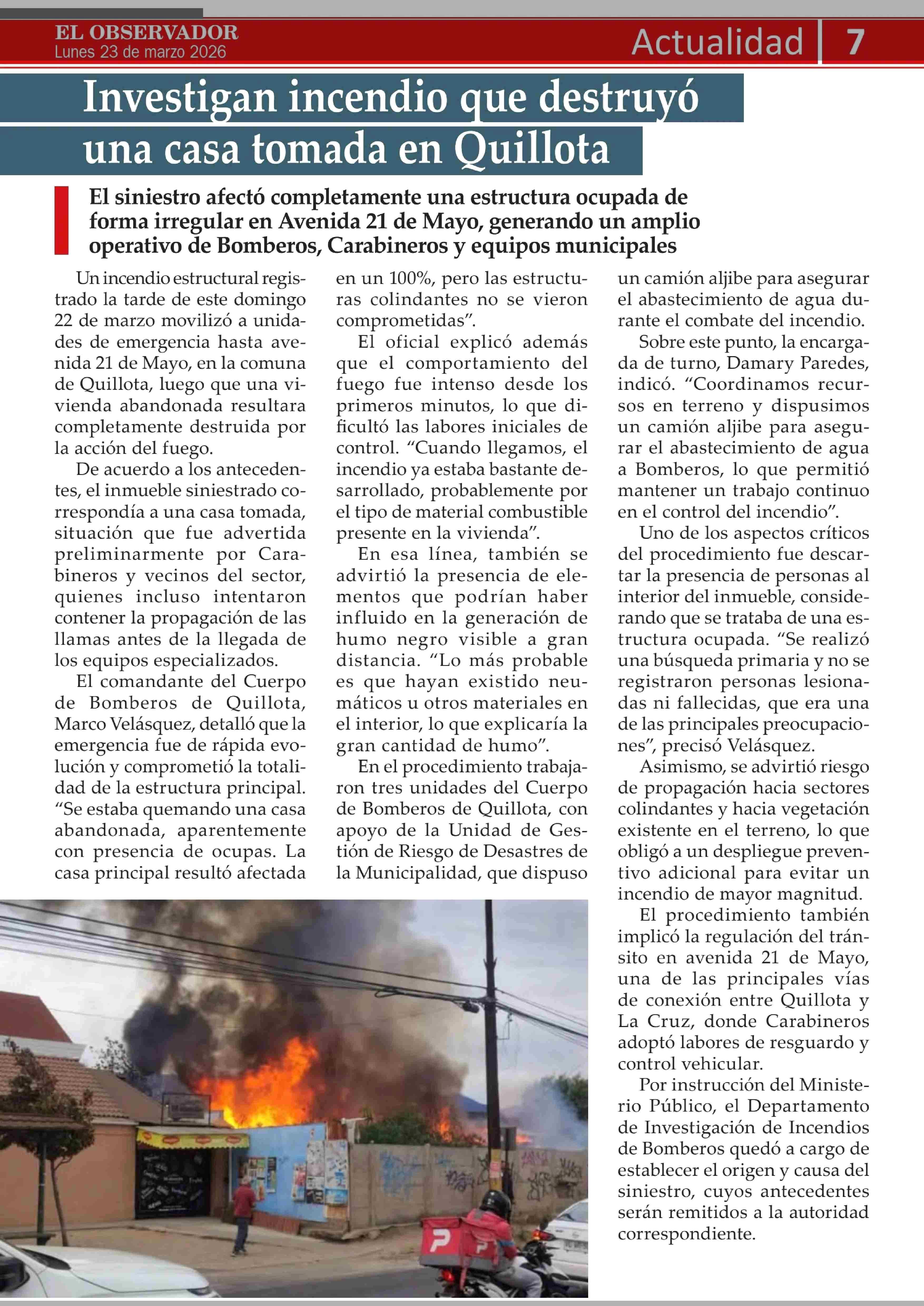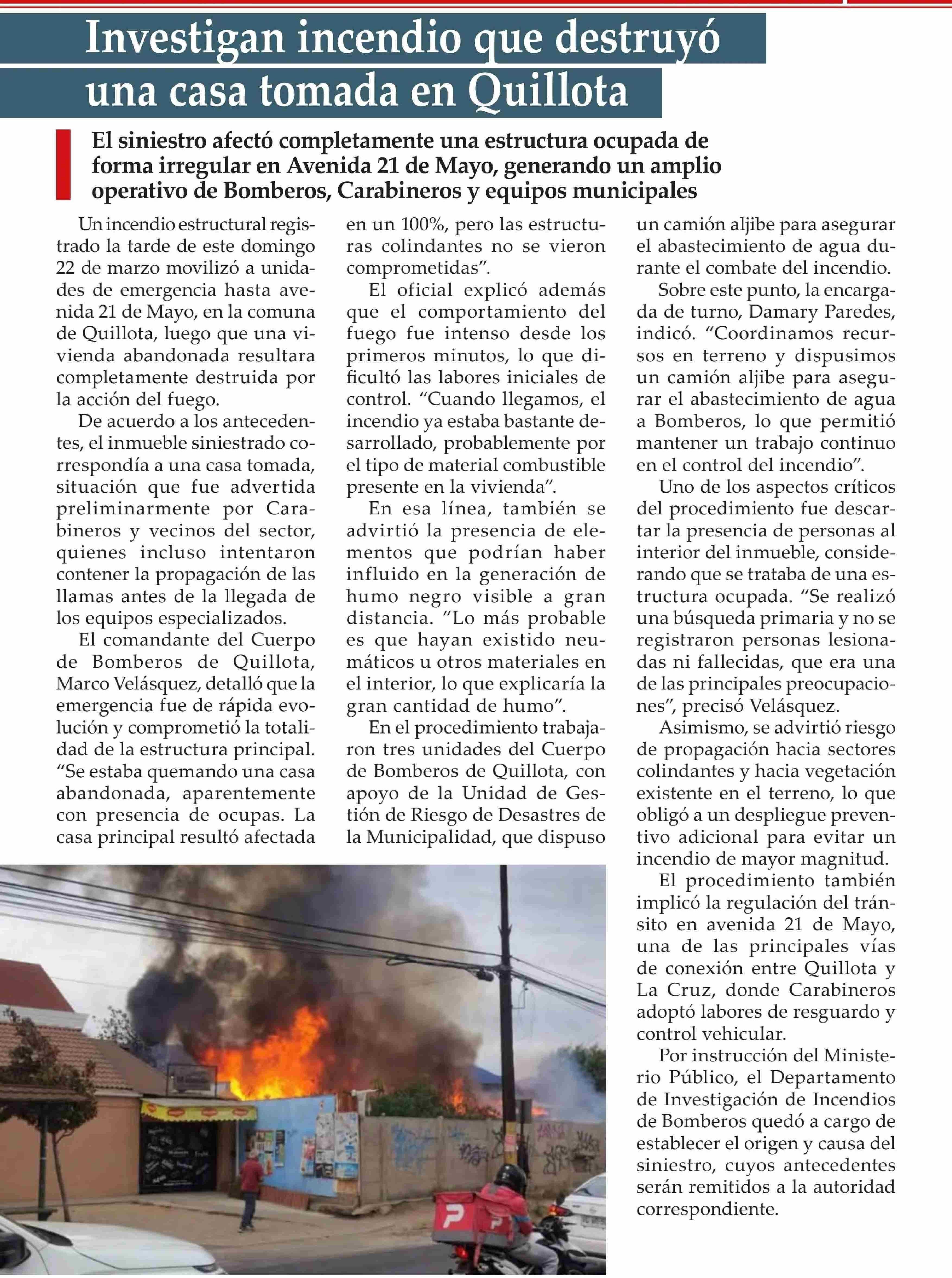 Título: Investigan incendio que destruyó una casa tomada en Ouillota