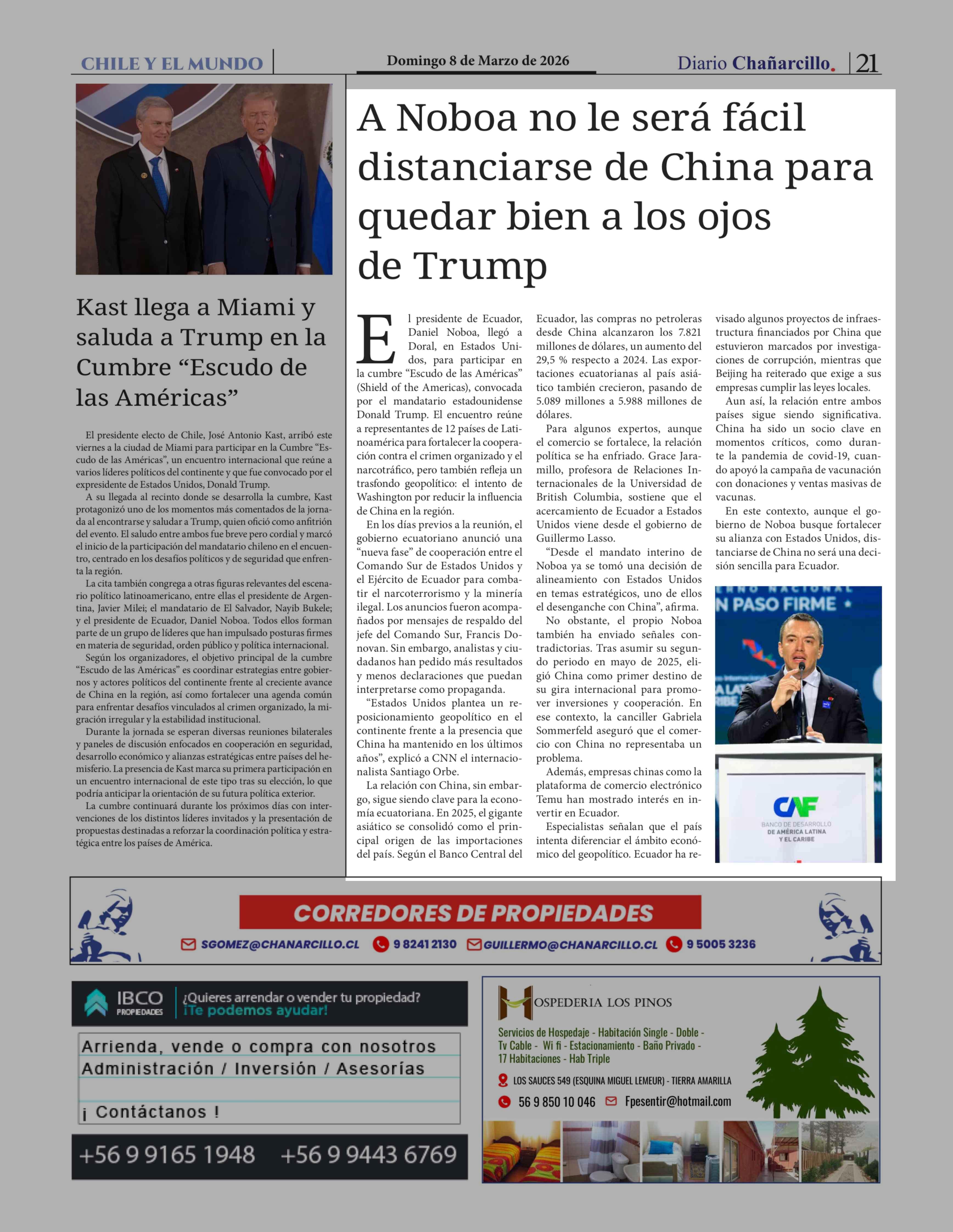 A Noboa no le será fácil distanciarse de China para quedar bien a los ojos de Trump 08-03-2026 Diario Chañarcillo |