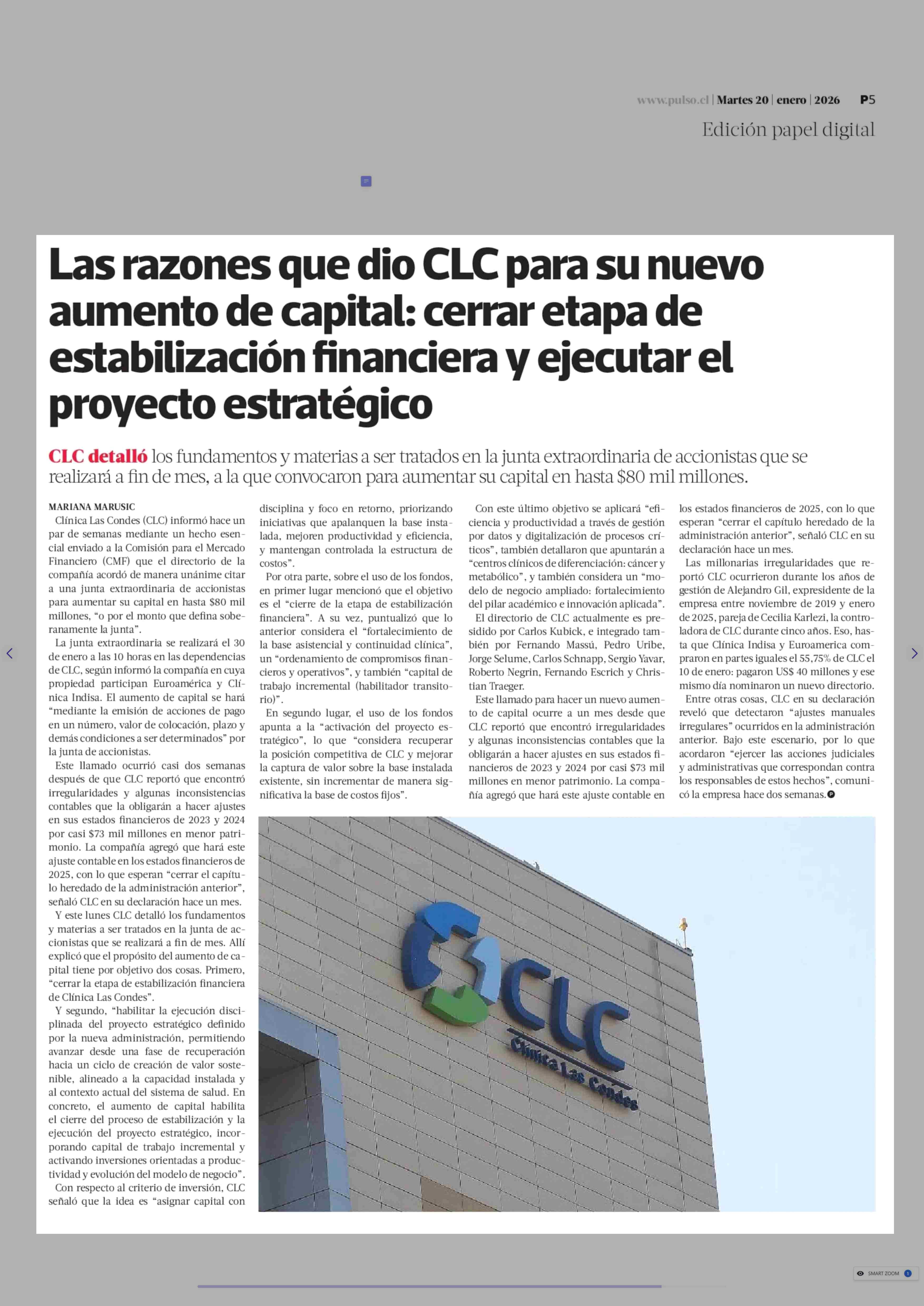 Título: Las razones que dio CLC para su nuevo aumento de capital: cerrar etapa de estabilización financiera y ejecutar el proyecto estratégico