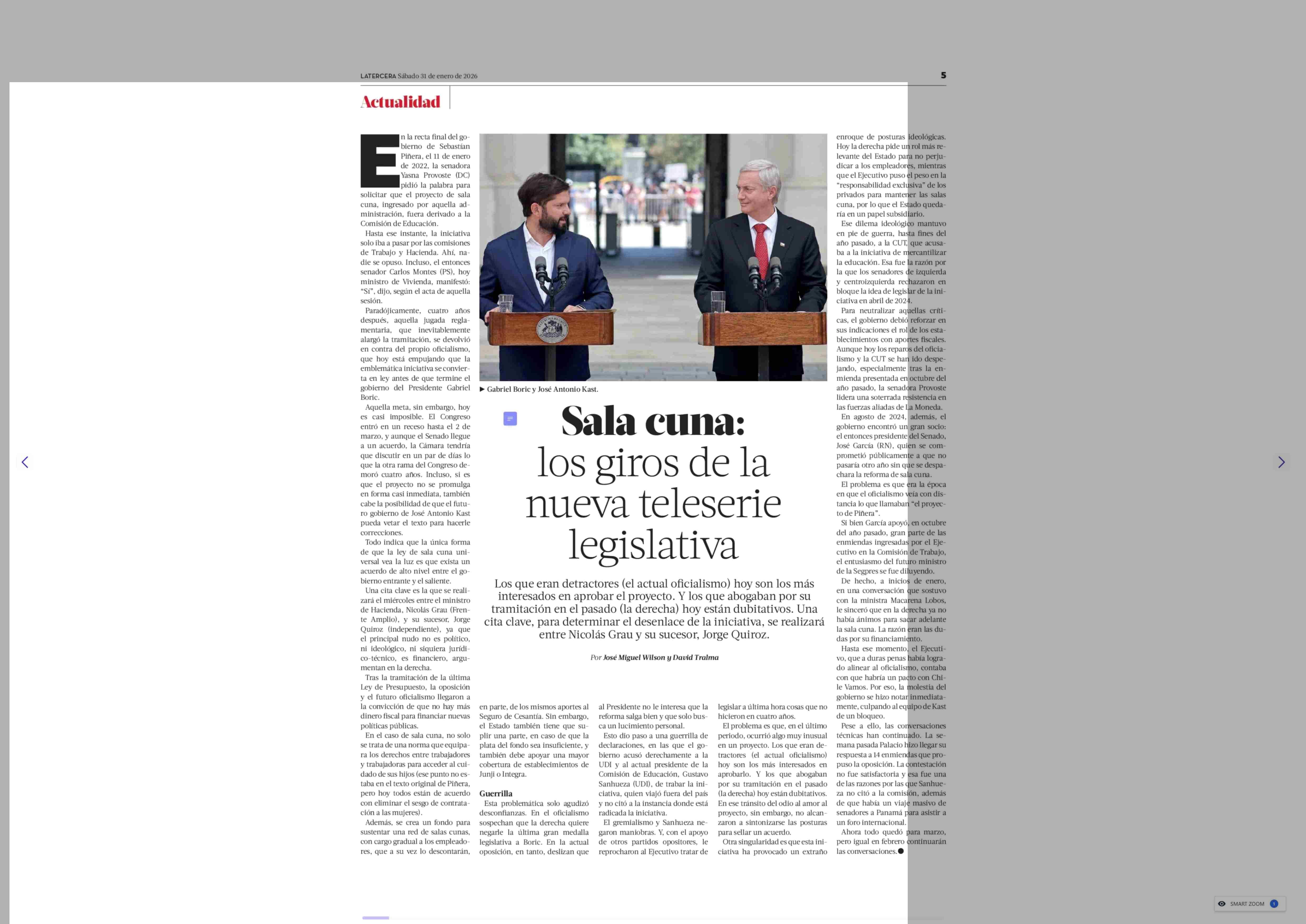 Sala cuna: los giros de la nueva teleserie legislativa 31-01-2026 La Tercera |