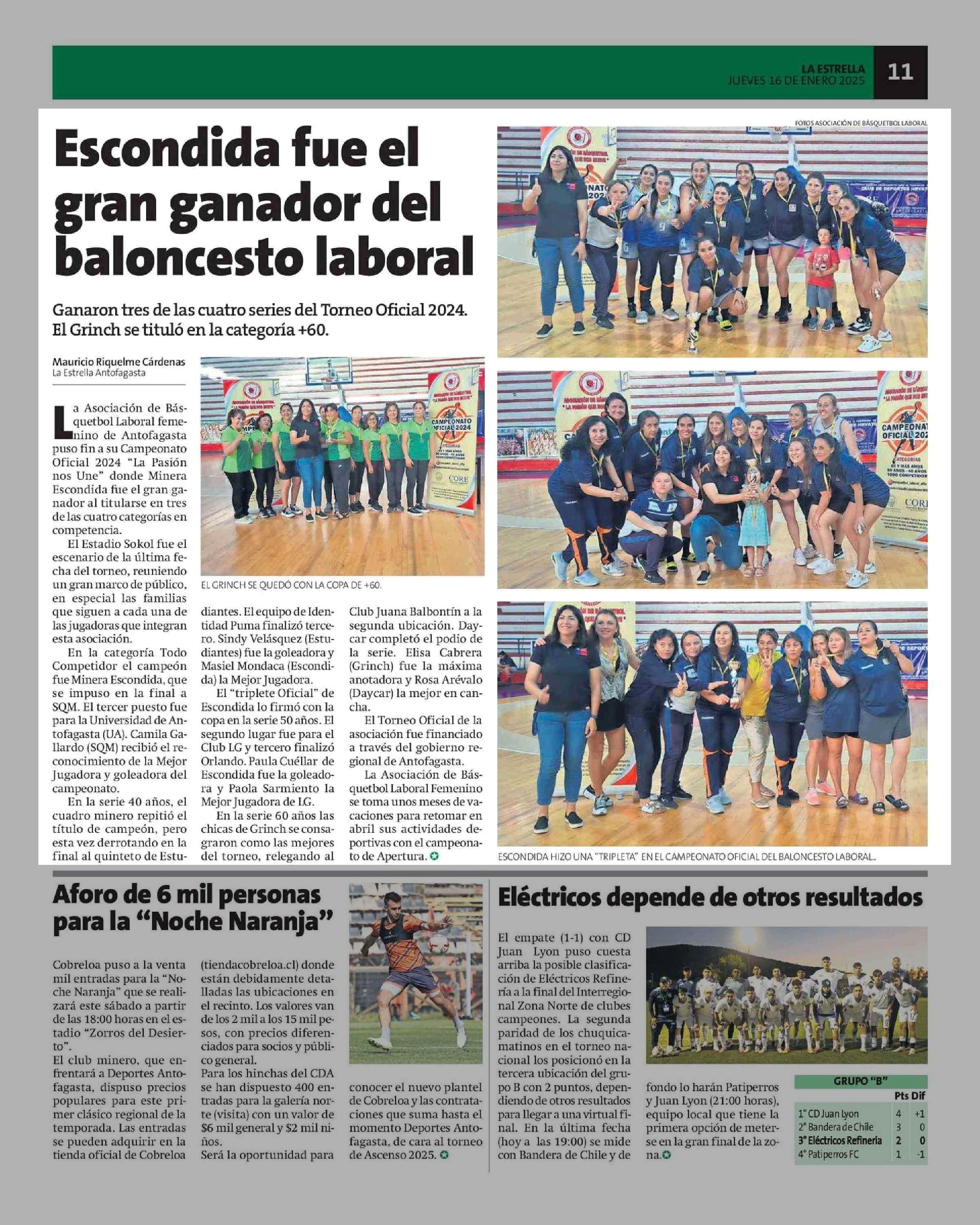 Escondida fue el gran ganadordel baloncesto laboral 16-01-2025 La Estrella de Tocopilla |
