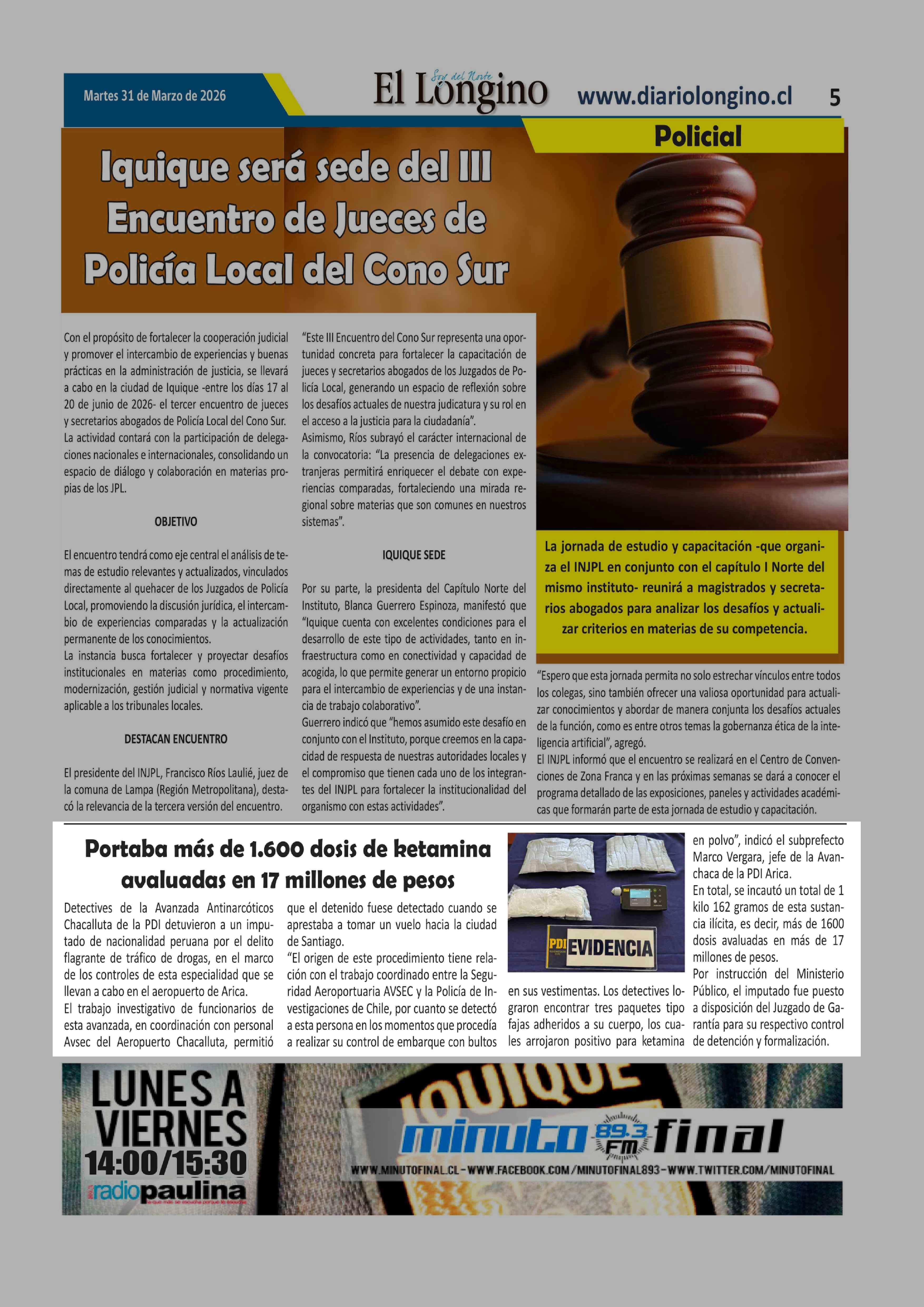 | Fecha: | 31-03-2026 | Sector: | Noticia general | Región: | Región de Tarapacá |
