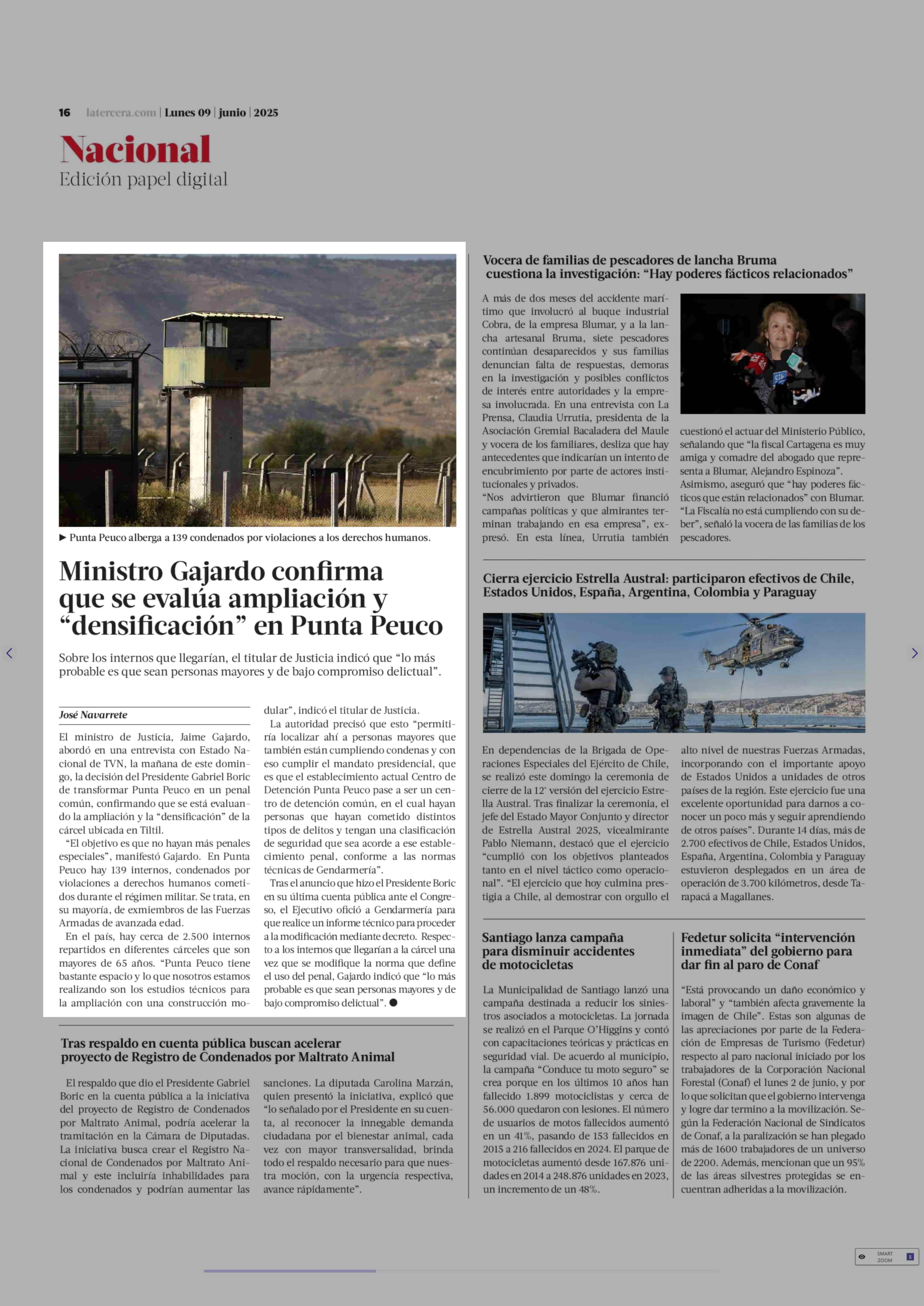 Ministro Gajardo confirma que se evalúa ampliación y "densificación" en Punta Peuco 09-06-2025 La Tercera |