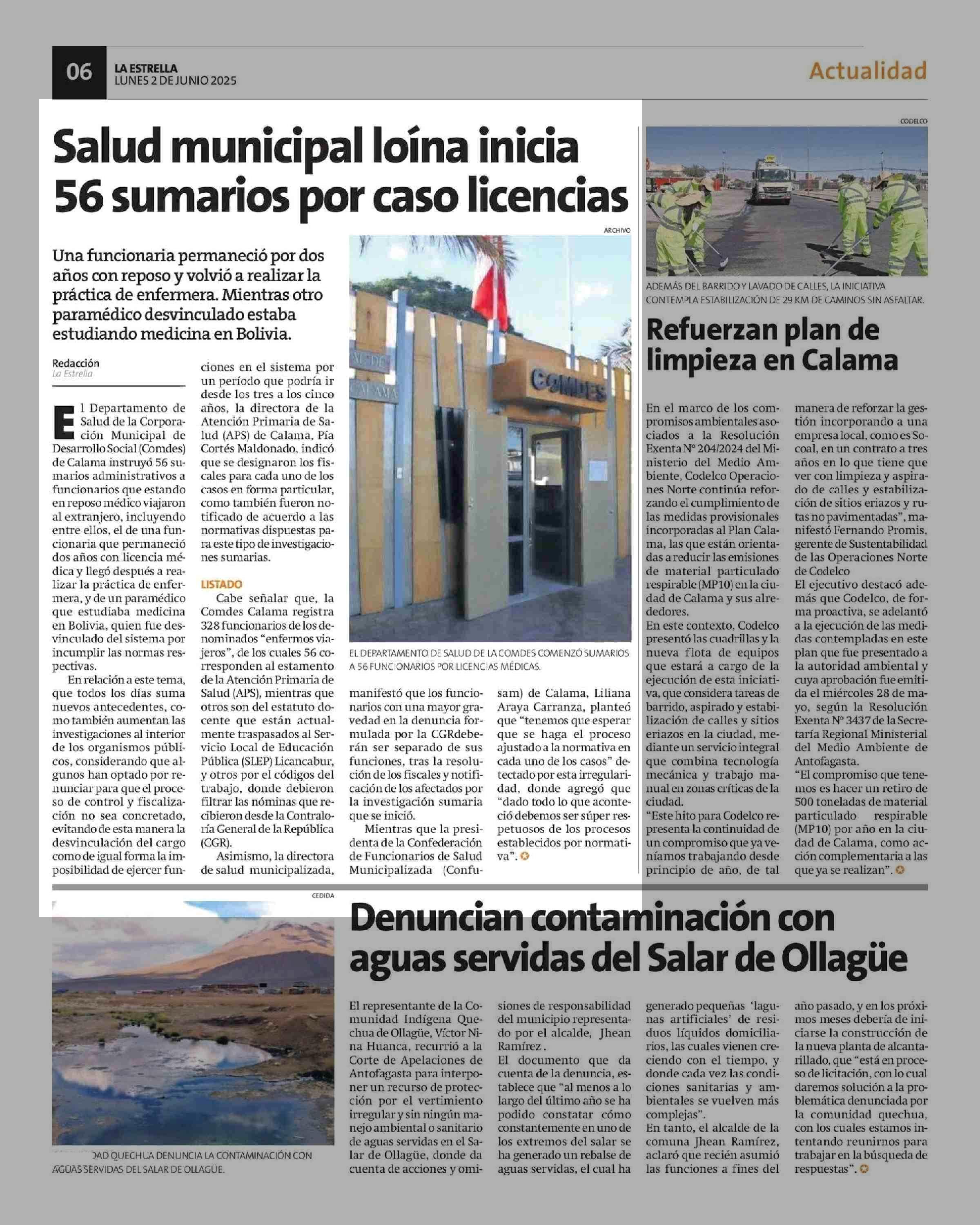 Salud municipal loína inicia 56 sumarios por caso licencias 02-06-2025 La Estrella de Antofagasta |