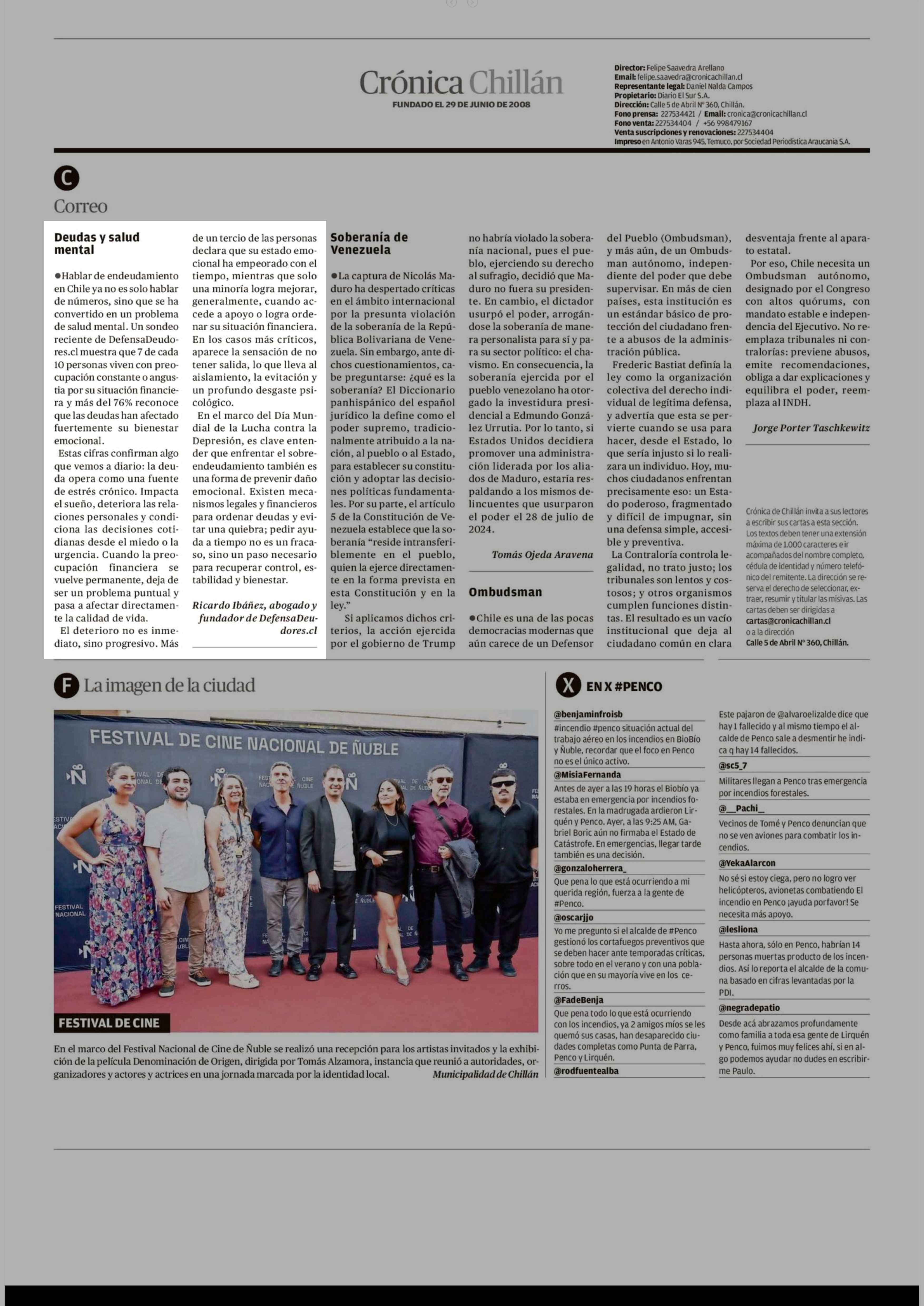 Cartas: Deudas y salud mental 19-01-2026 Crónica de Chillán |