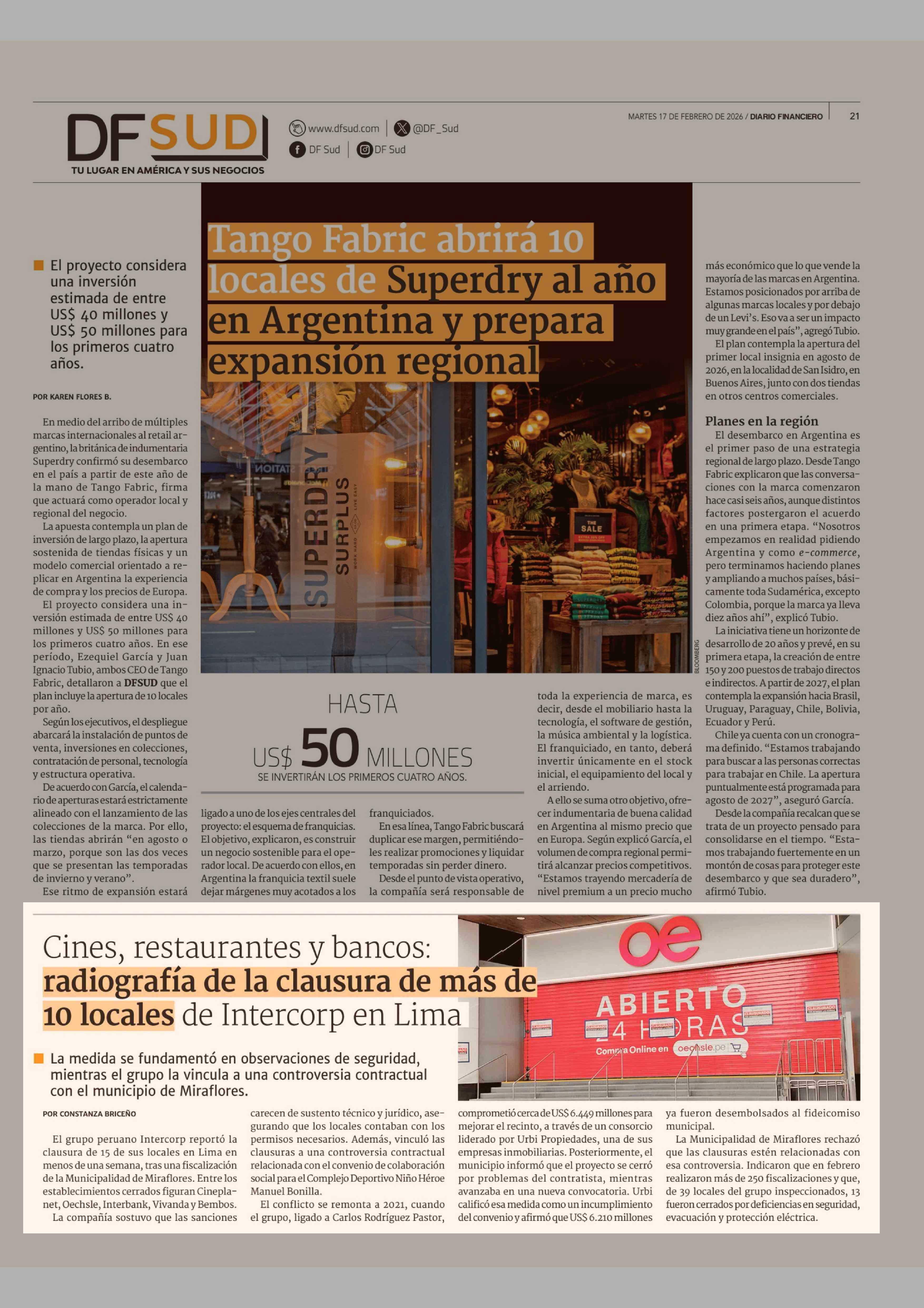 Cines, restaurantes y bancos: radiografía de la clausura de más de 10 locales de Intercorp en Lima 17-02-2026 Diario Financiero |