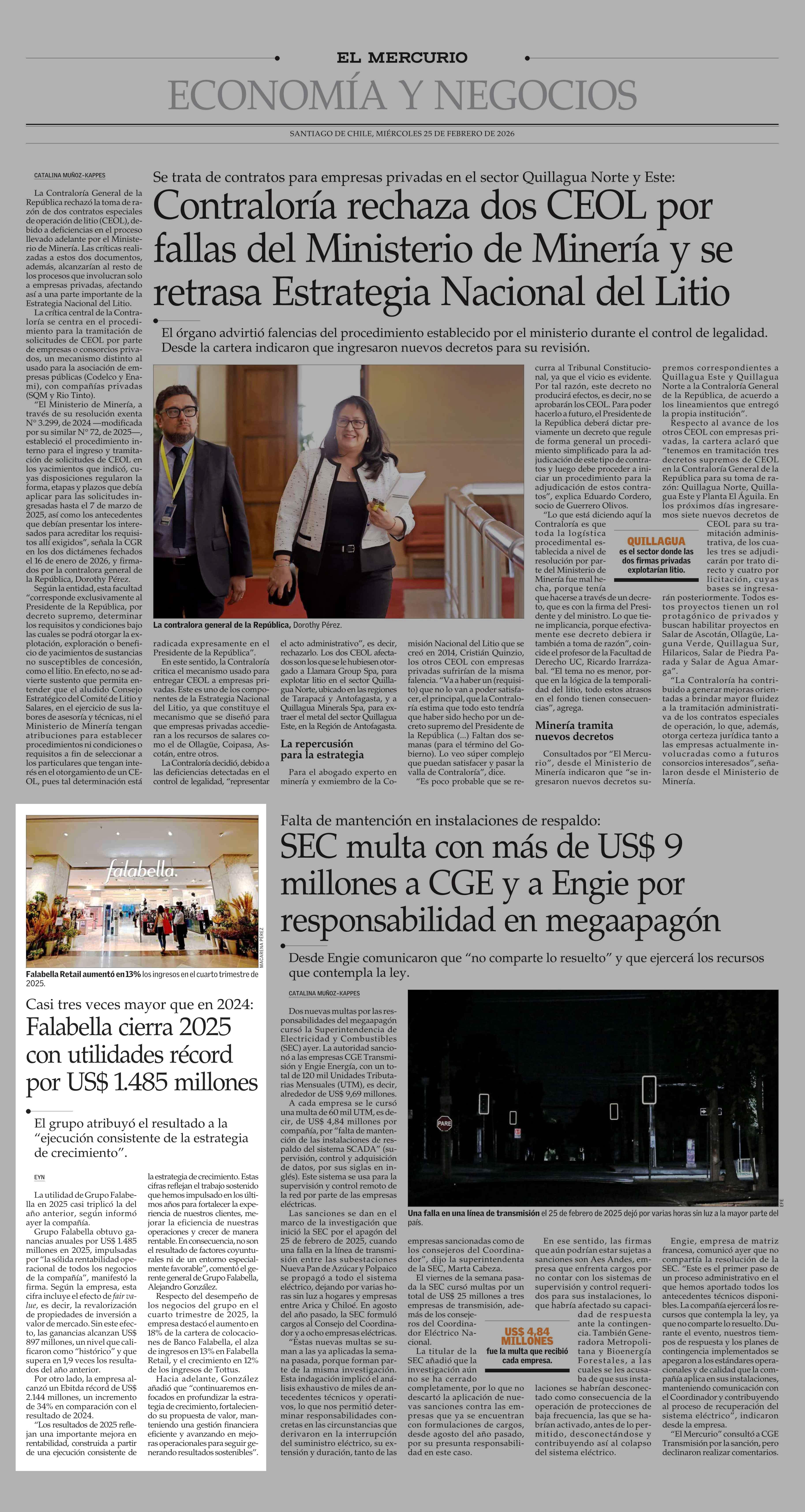 Falabella cierra 2025 con utilidades récord por US$ 1.485 millones 25-02-2026 El Mercurio |