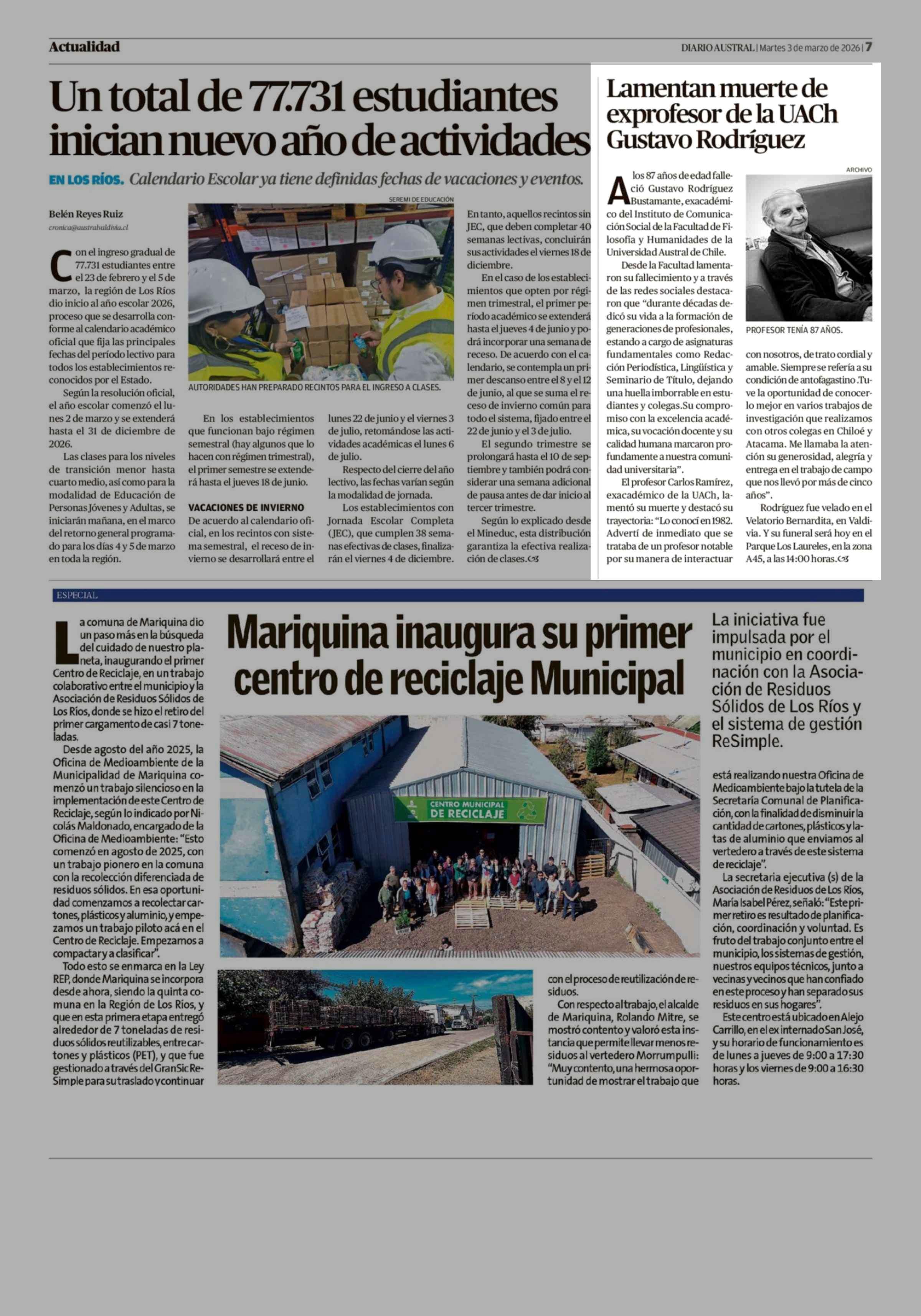 | Fecha: | 03-03-2026 | Sector: | Noticia general | Región: | Región de Los Ríos |