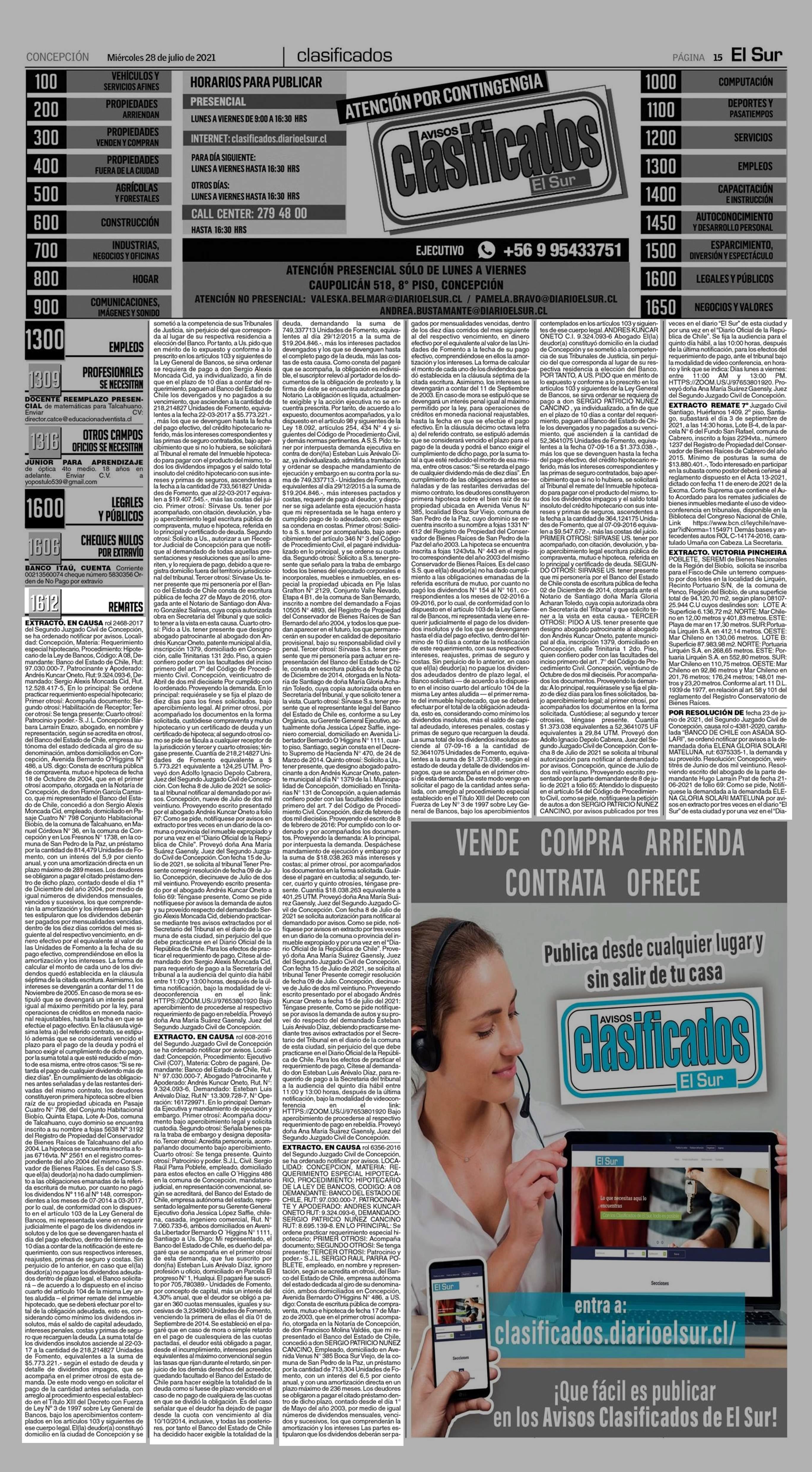 Remates 1612 REMATES 28-07-2021 El Sur |