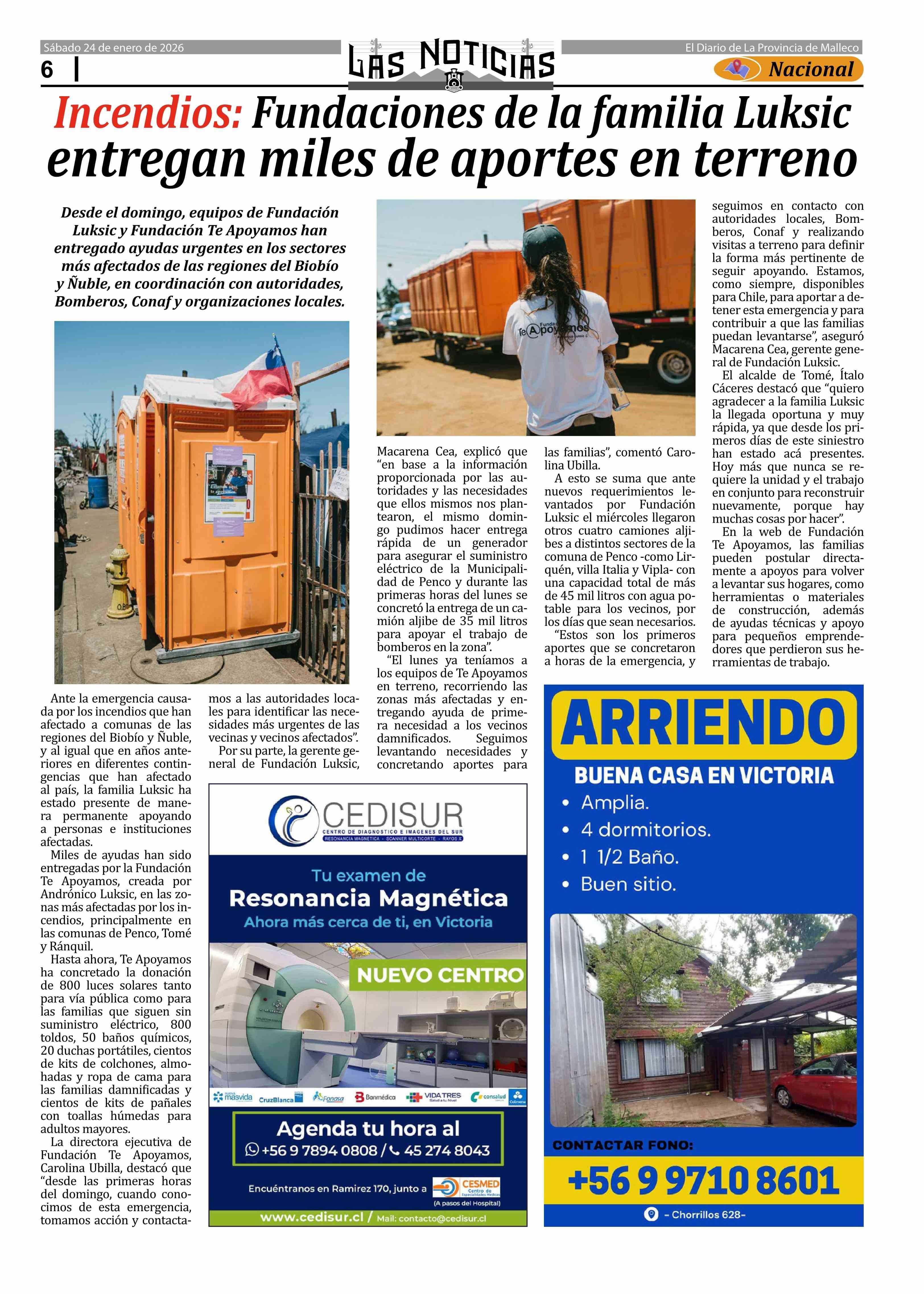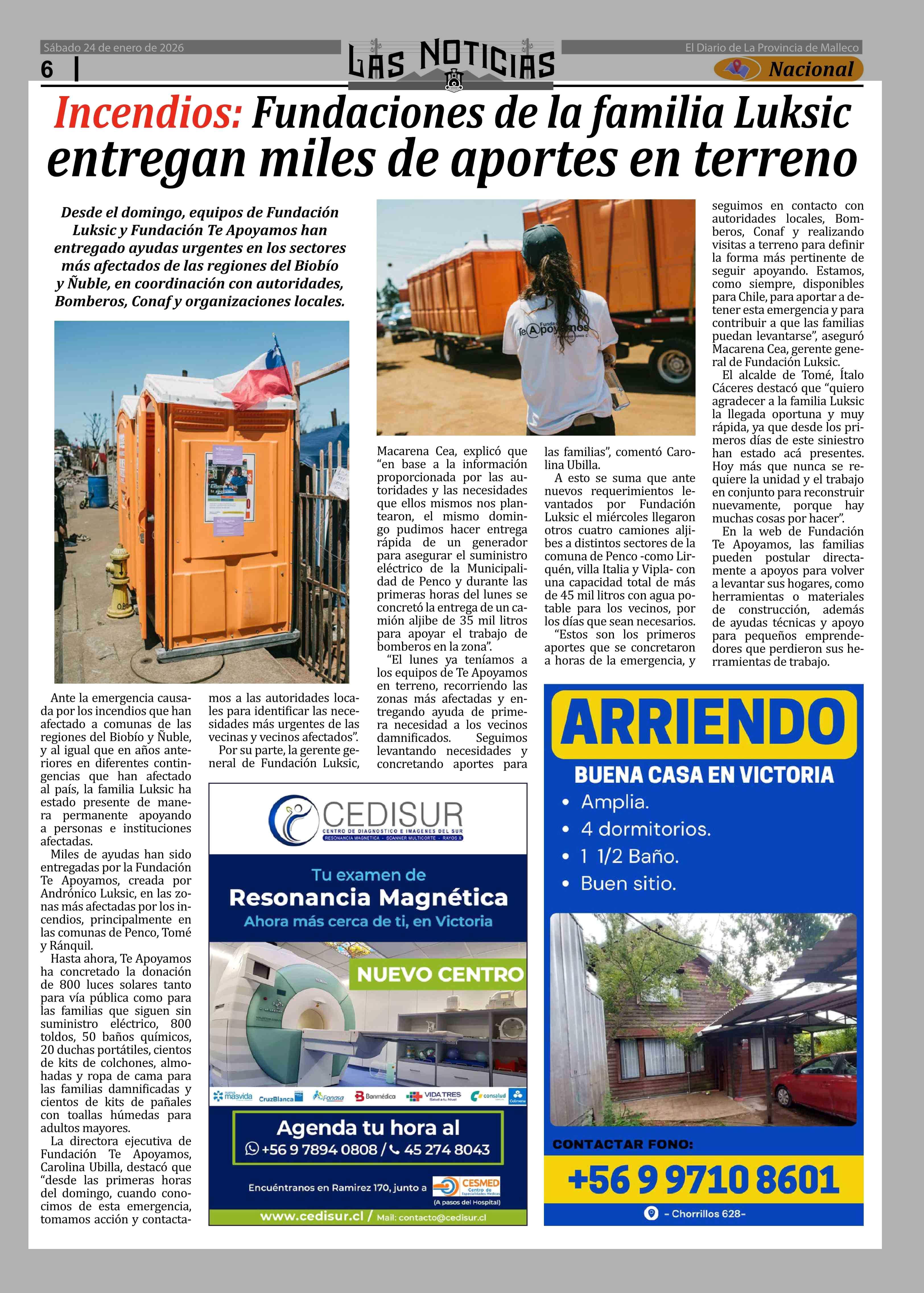 | Fecha: | 24-01-2026 | Sector: | Noticia general | Región: | Región de la Araucanía |