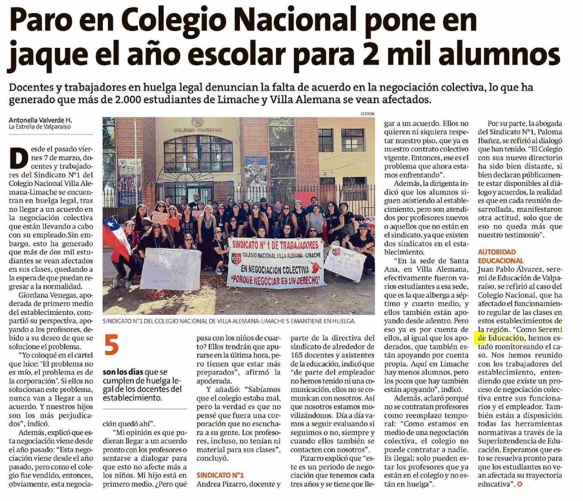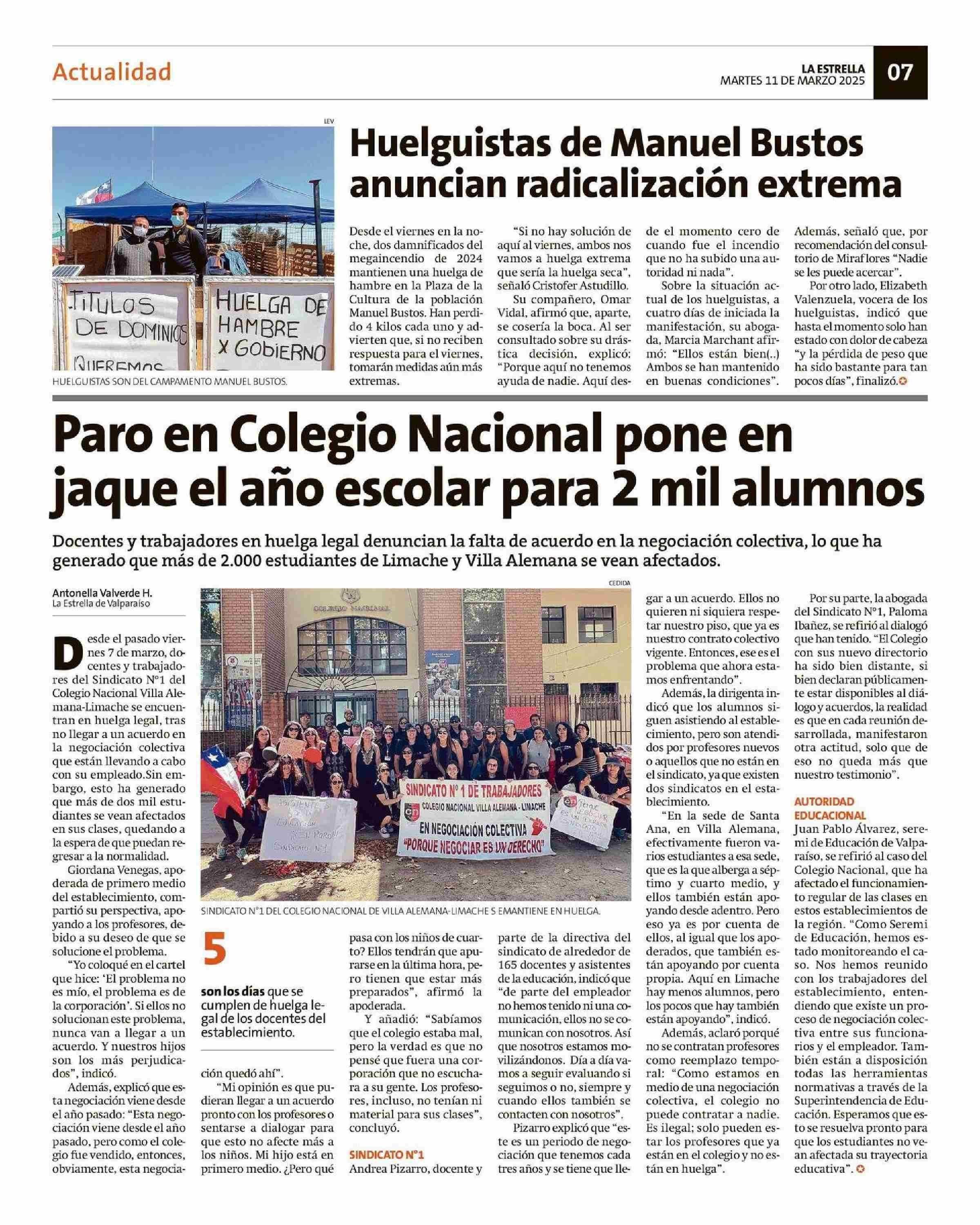 Paro en Colegio Nacional pone en jaque el año escolar para 2 mil alumnos 11-03-2025 La Estrella de Valparaíso |