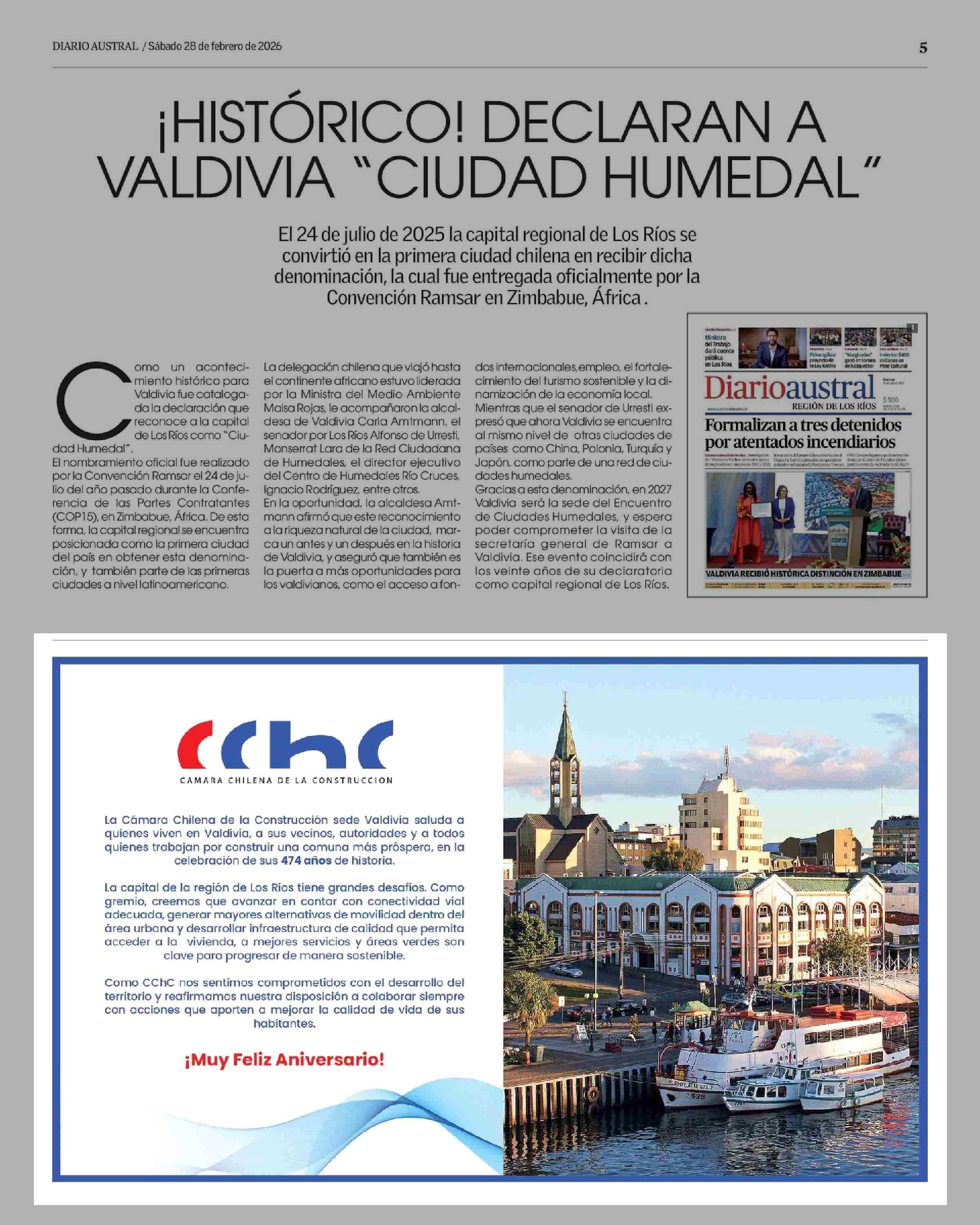Aviso Publicitario: CAMARA CHILENA DE LA CONSTRUCCION 28-02-2026 Diario Austral Región de Los Ríos |