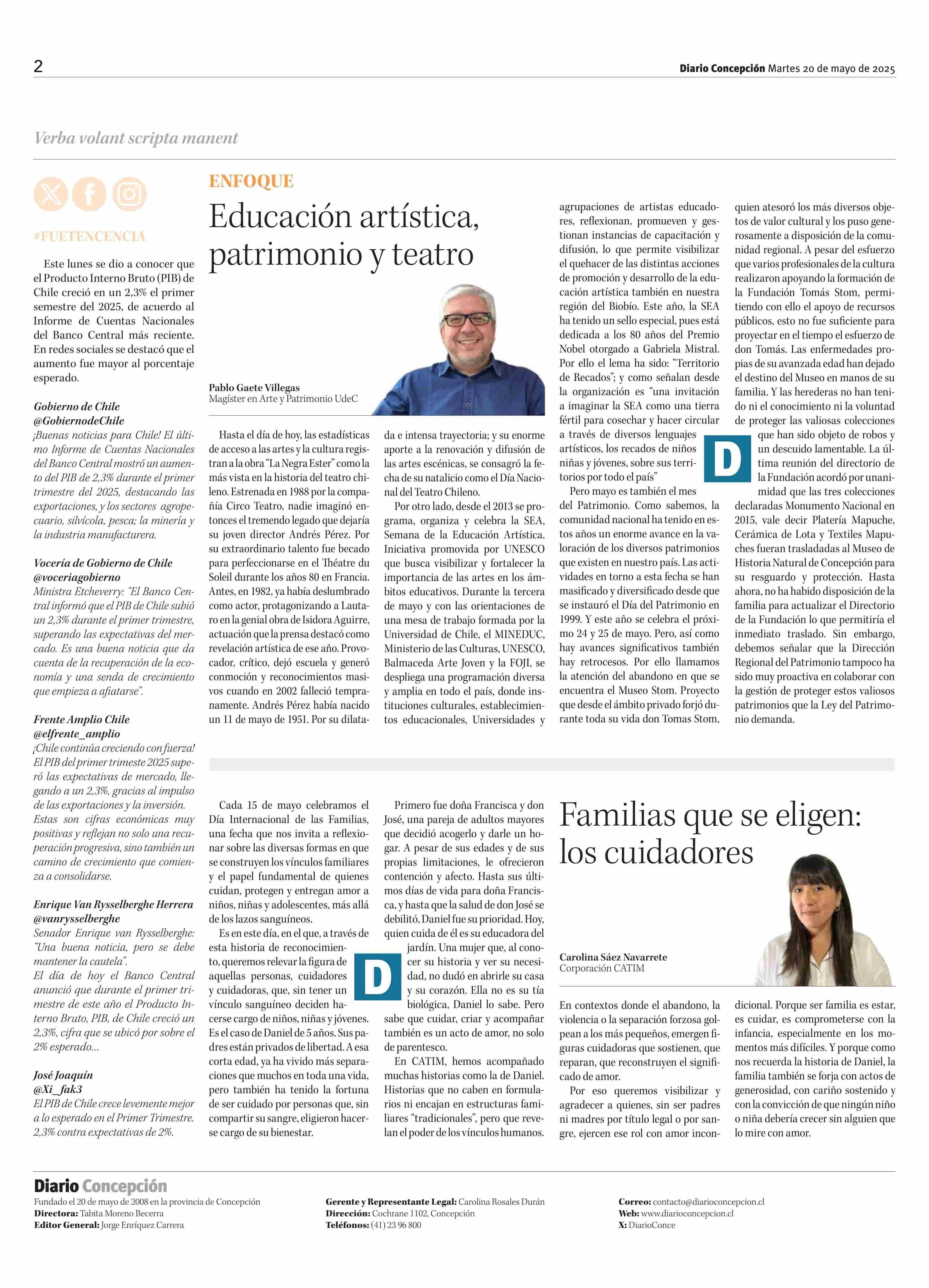 COLUMNAS DE OPINIÓN: Educación artística, patrimonio y teatro 20-05-2025 Diario Concepción |