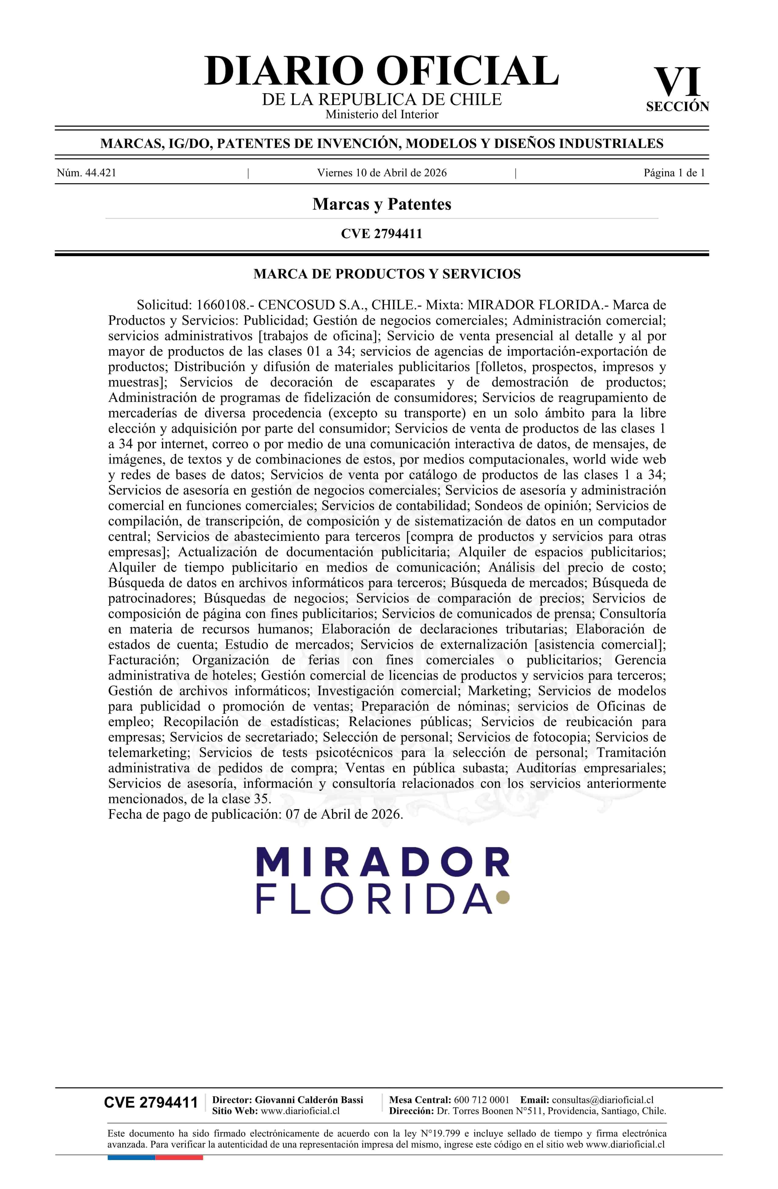 Solicitud número 1660108.- MIRADOR FLORIDA