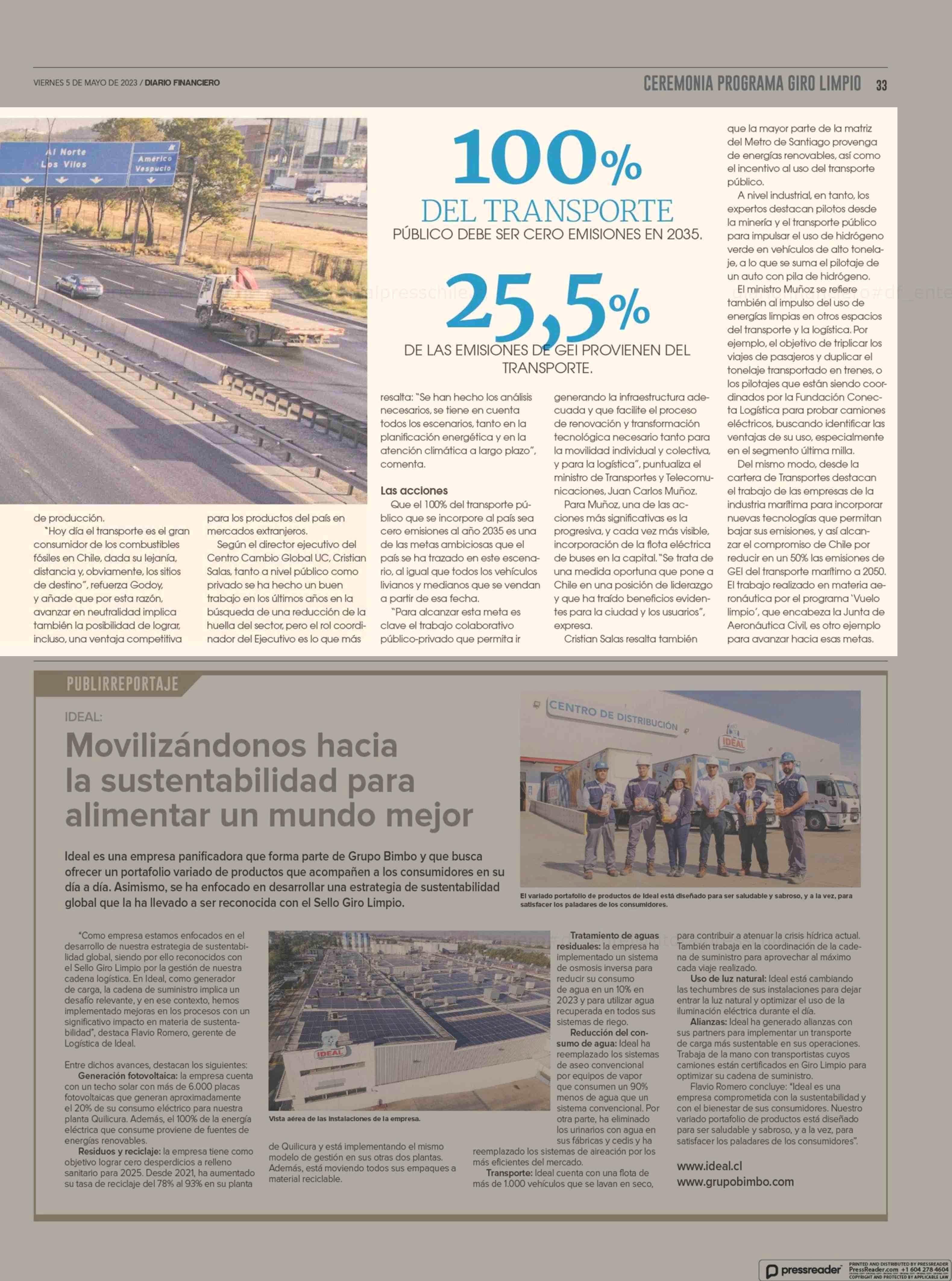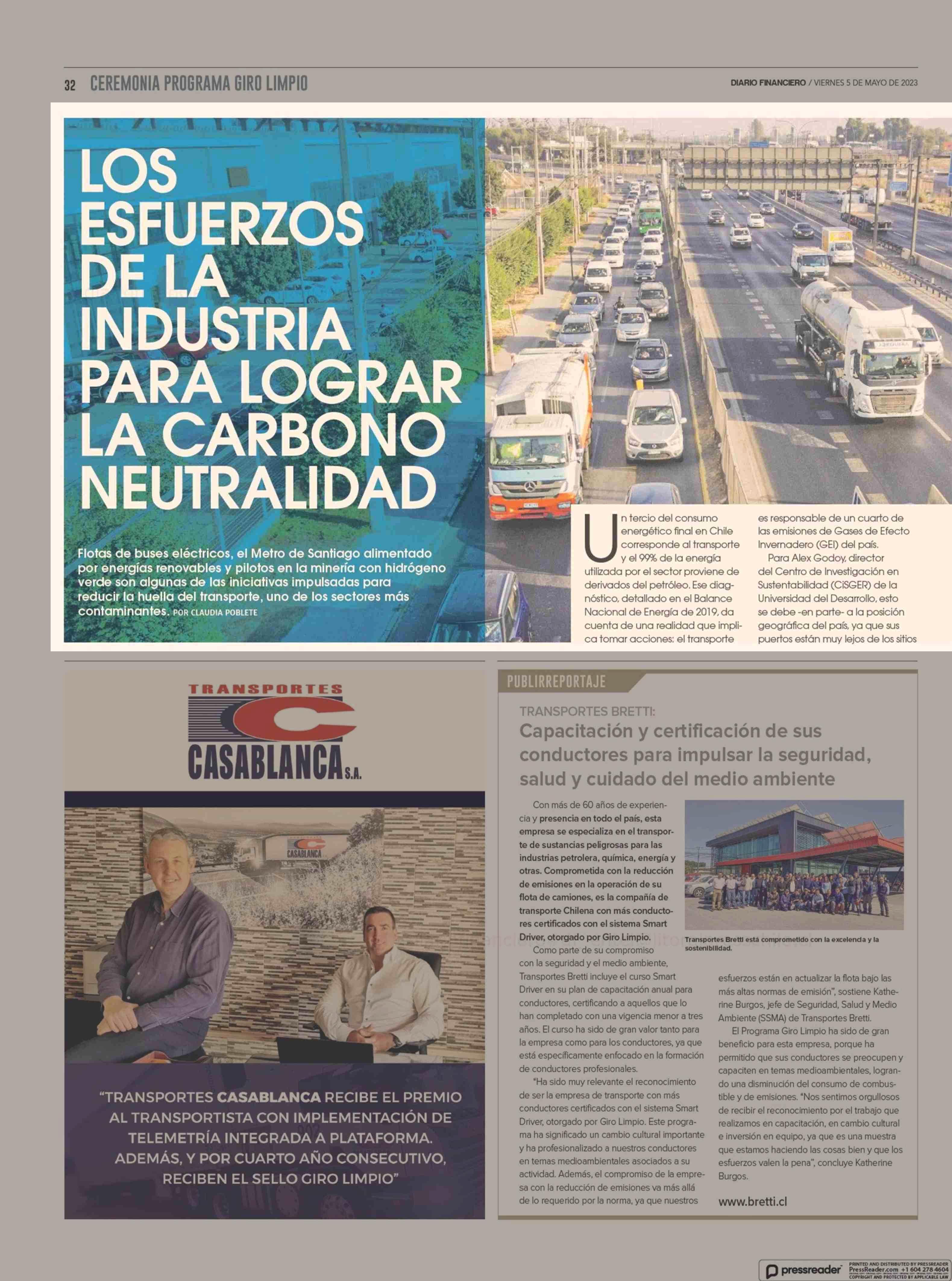 LOS ESFUERZOS DE LA INDUSTRIA PARA LOGRAR LA CARBONO NEUTRALIDAD 05-05-2023 Diario Financiero |