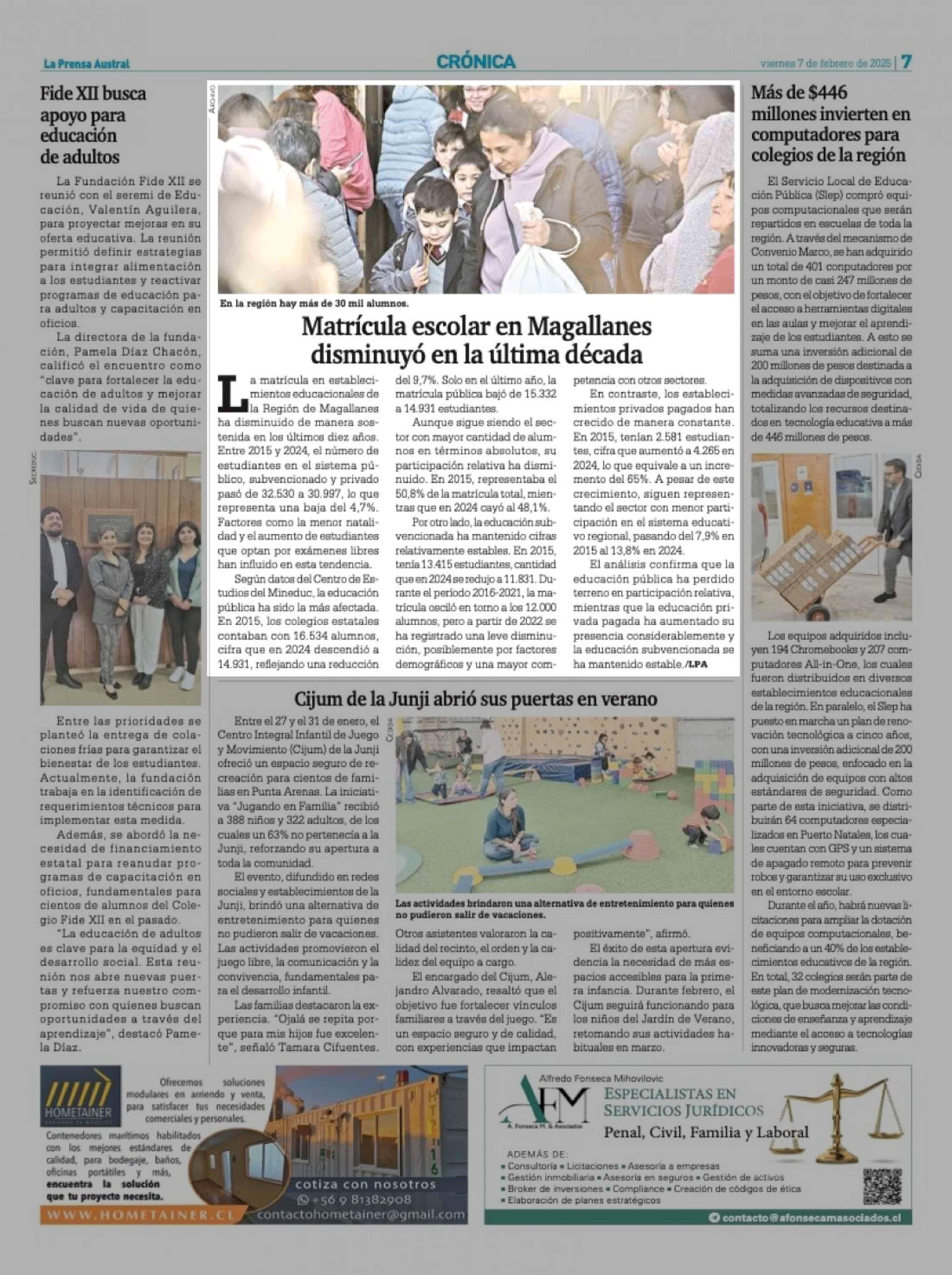 Matricula escolar en Magallanes disminuvó en la última década 07-02-2025 La Prensa Austral |