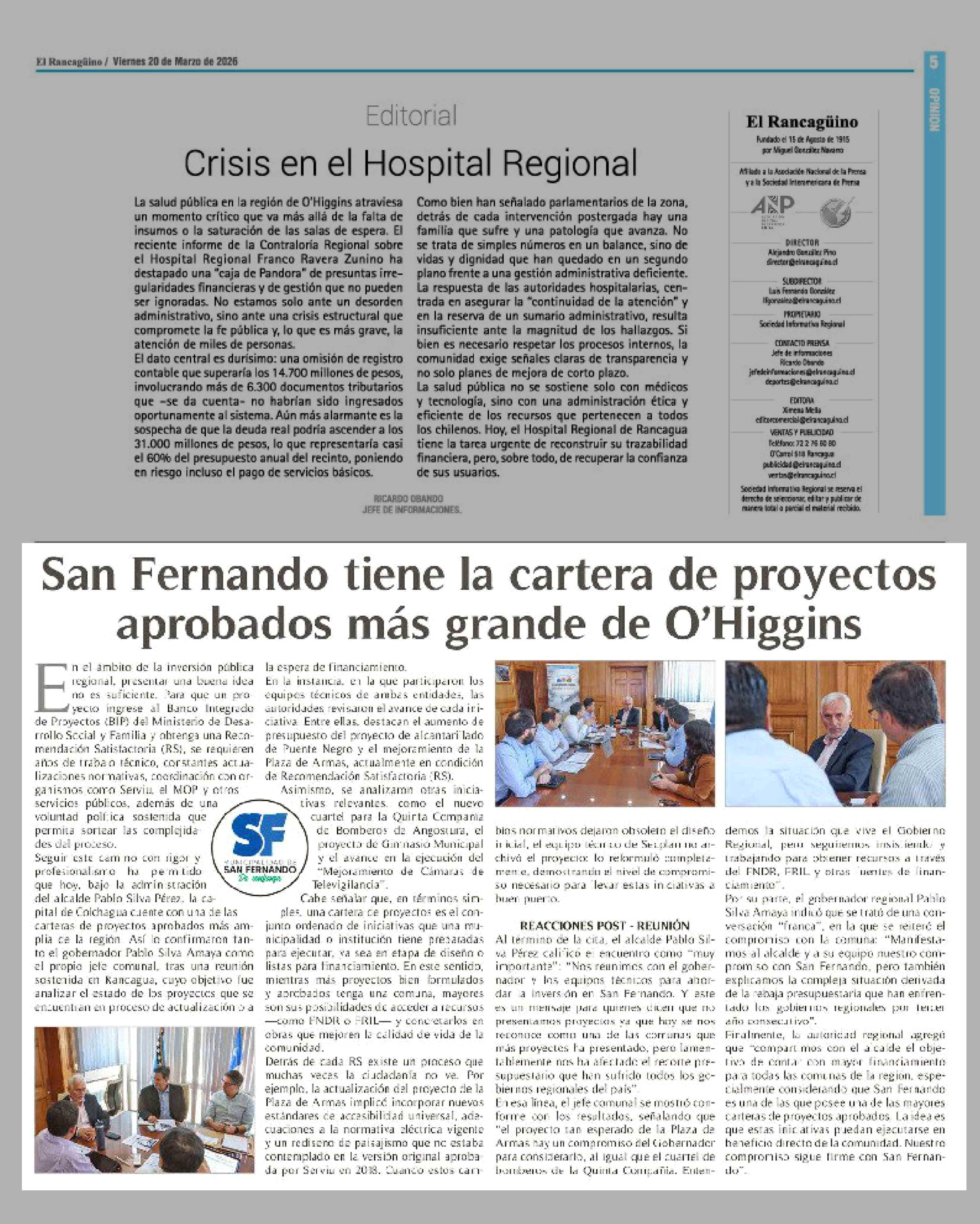 San Fernando tiene la cartera de proyectos aprobados más grande de O'Higgins 20-03-2026 El Rancagüino |