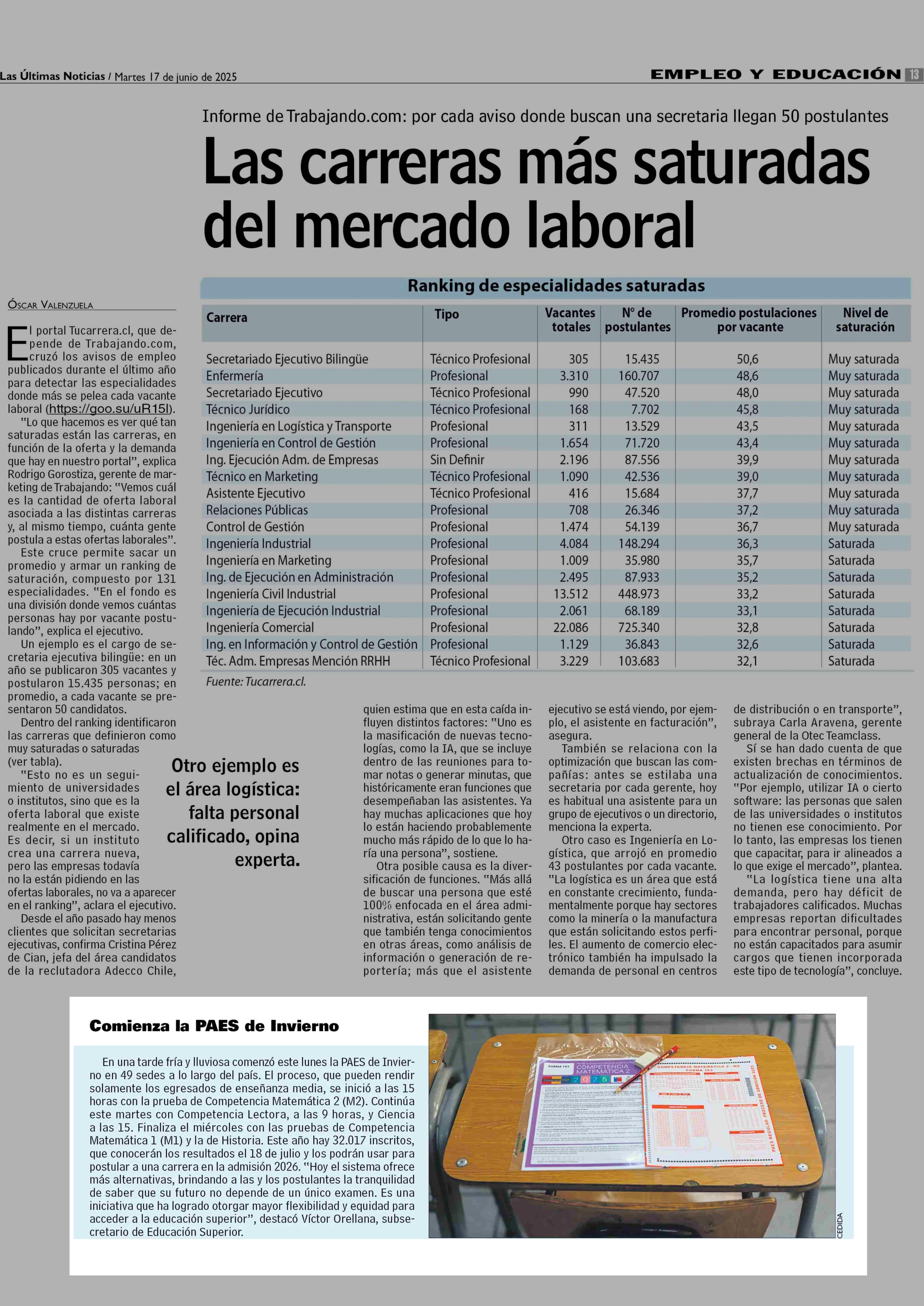 Comienza la PAES de Invierno 17-06-2025 Las Últimas Noticias |