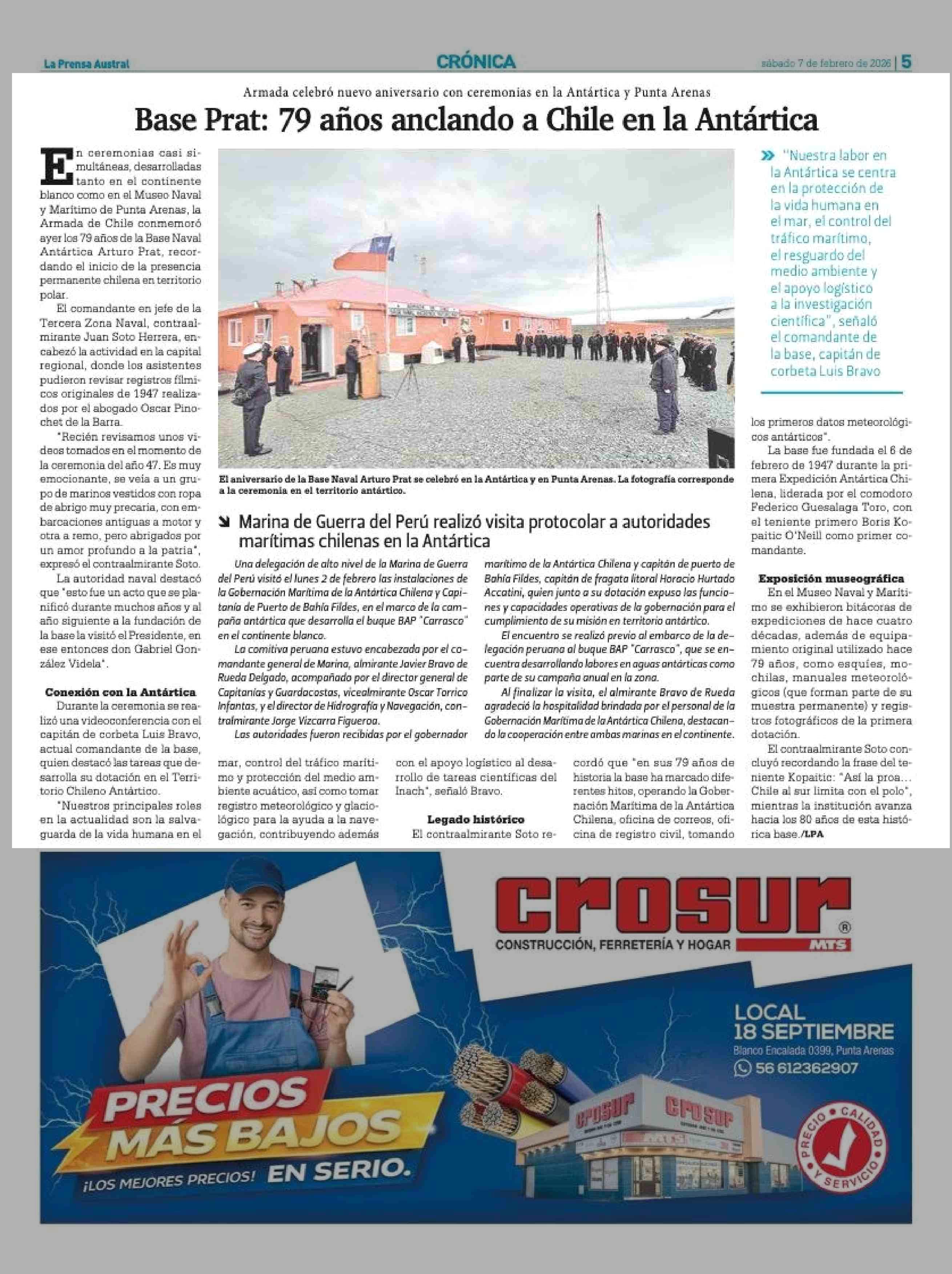 Base Prat: 79 años anclando a Chile en la Antártica 07-02-2026 La Prensa Austral |