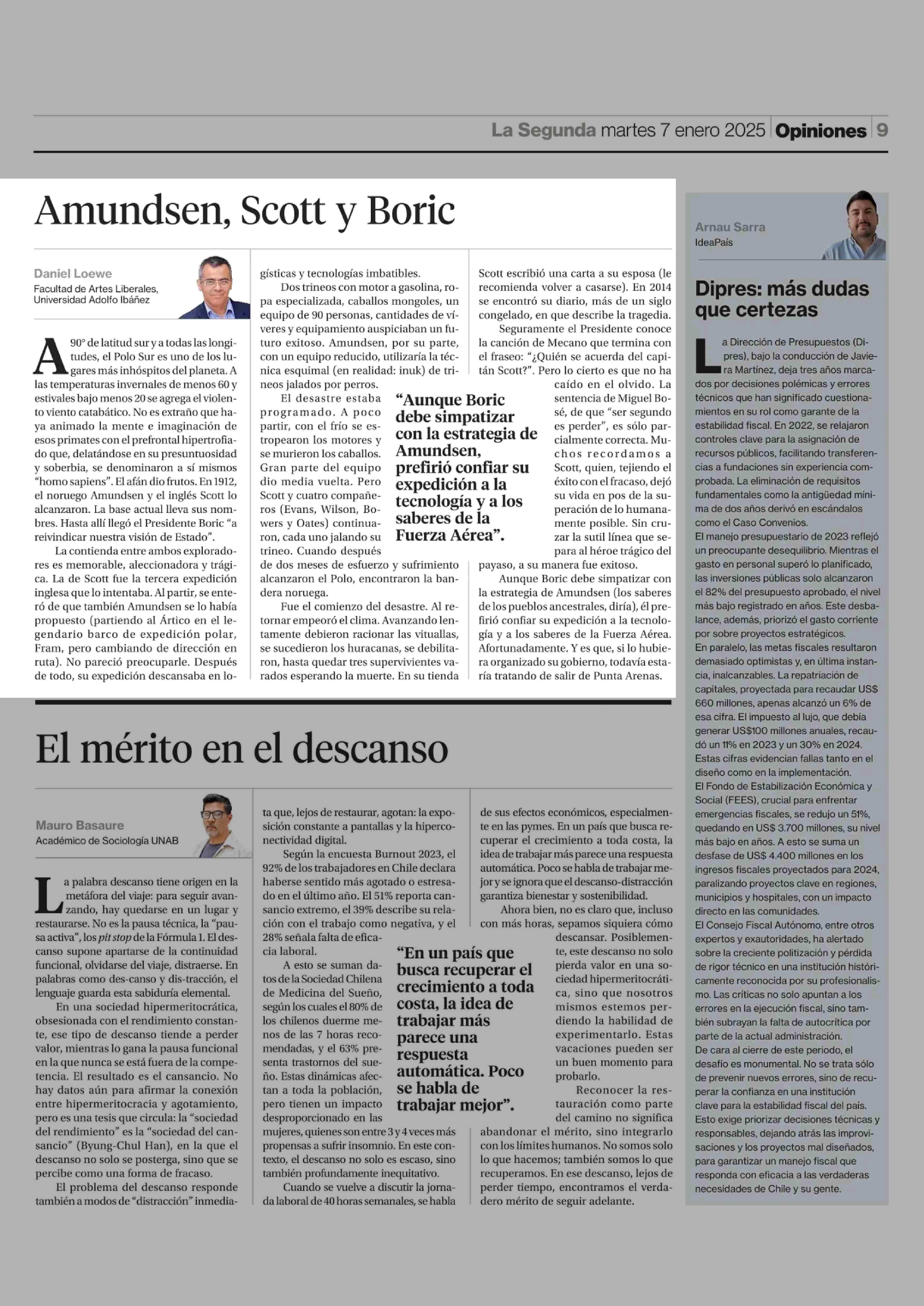 COLUMNAS DE OPINIÓN: Amundsen, Scott y Boric 07-01-2025 La Segunda |