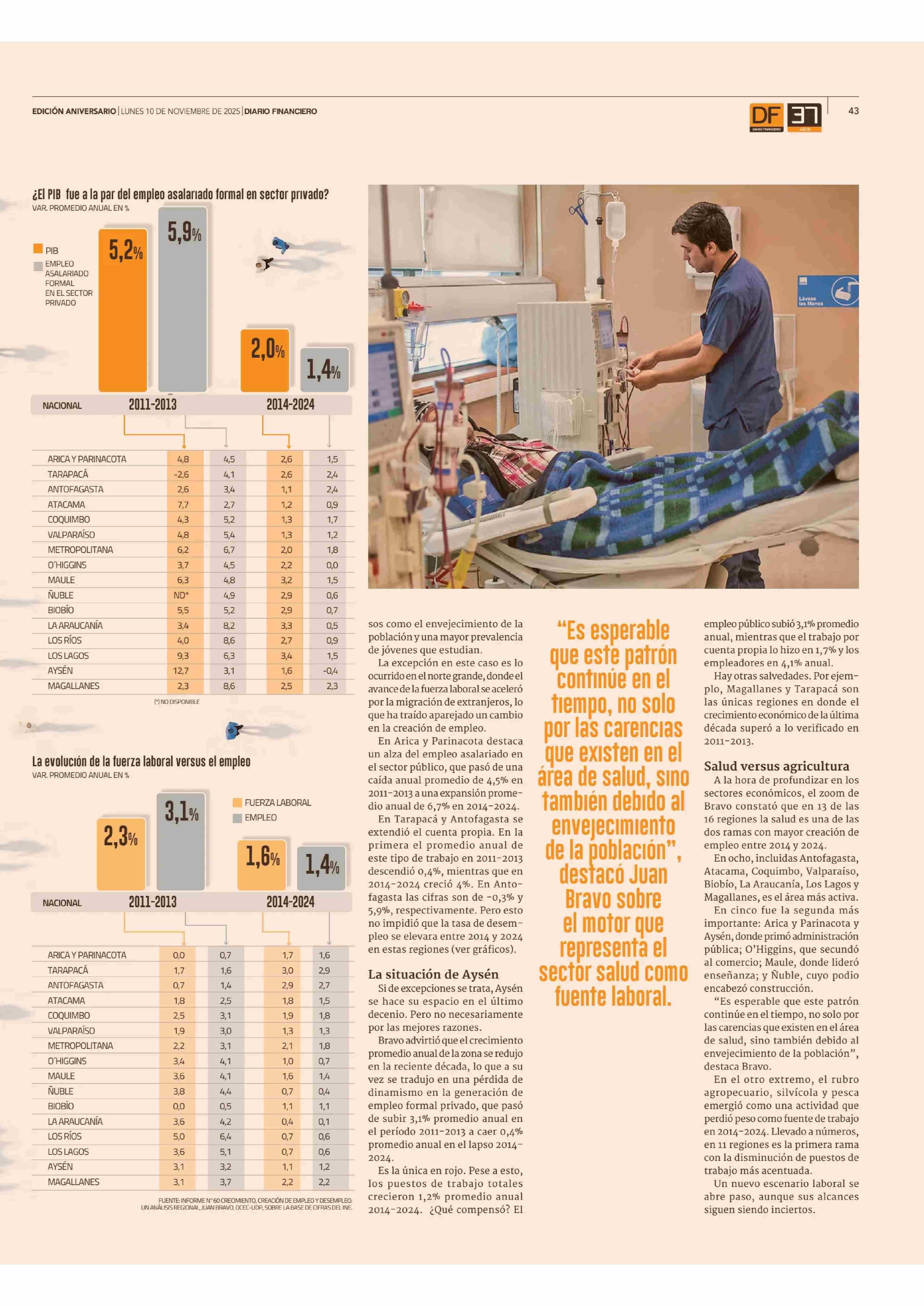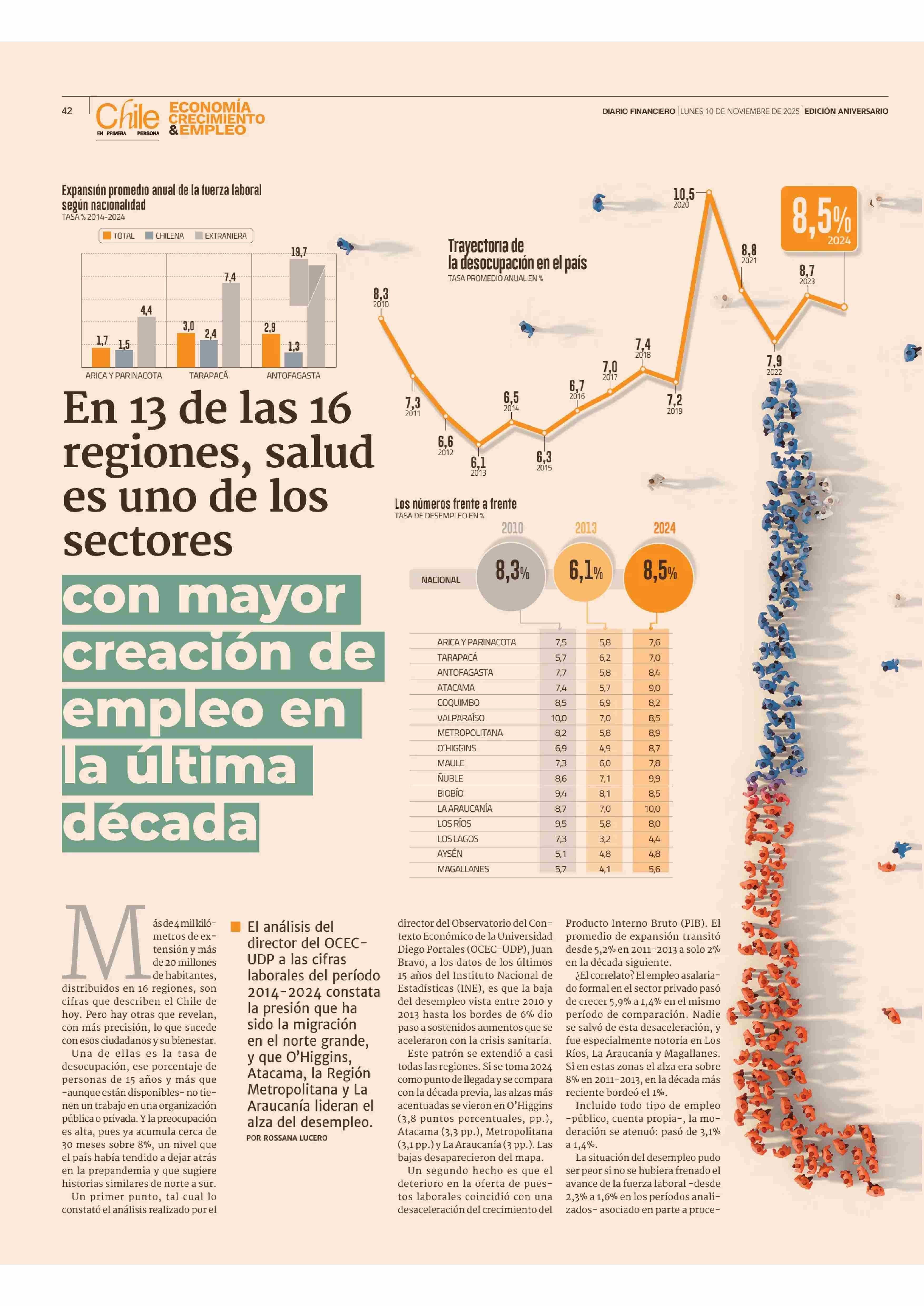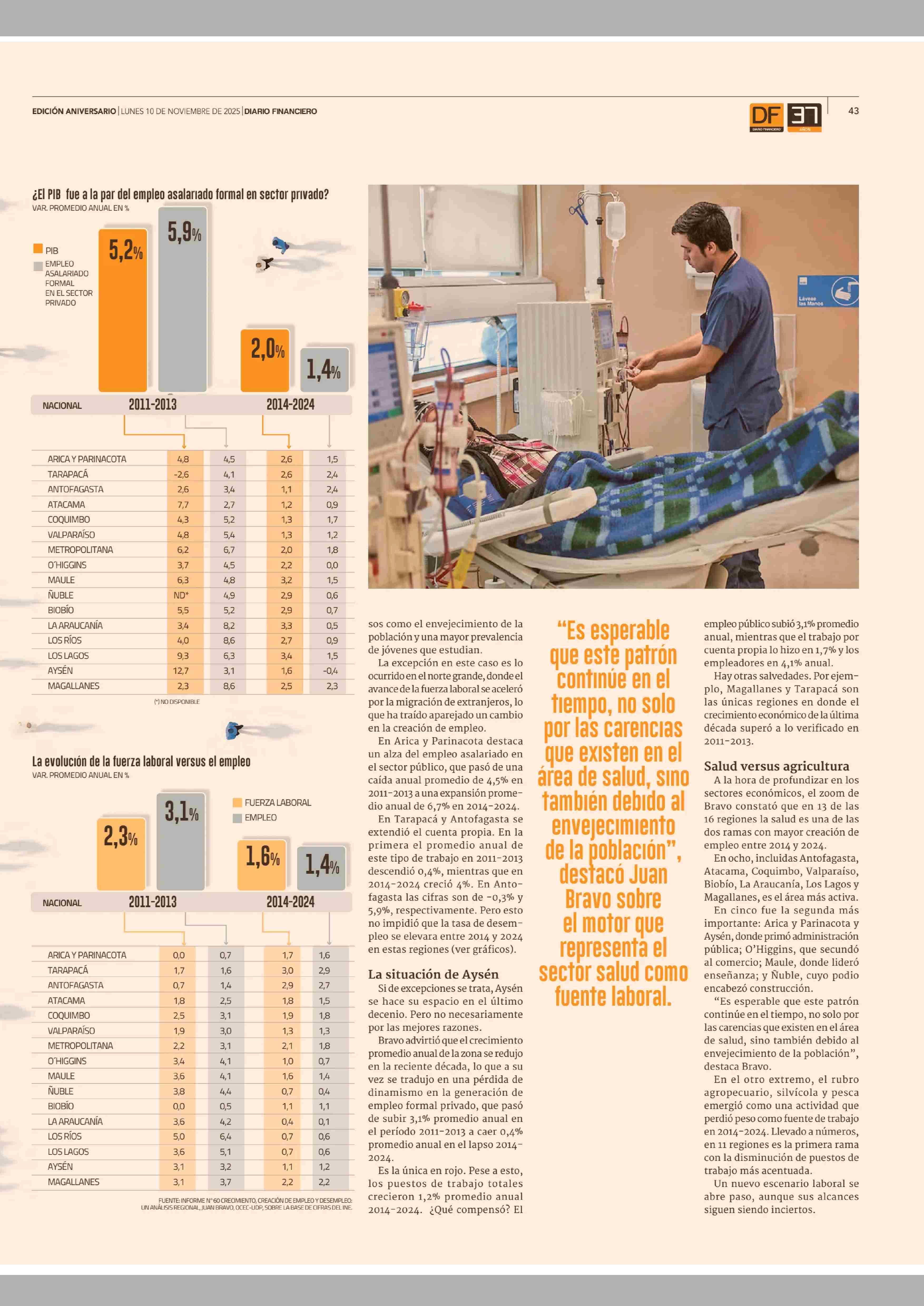 Título: En 13 de las 16 regiones, salud es uno de los sectores con mayor creación de empleo en la última década