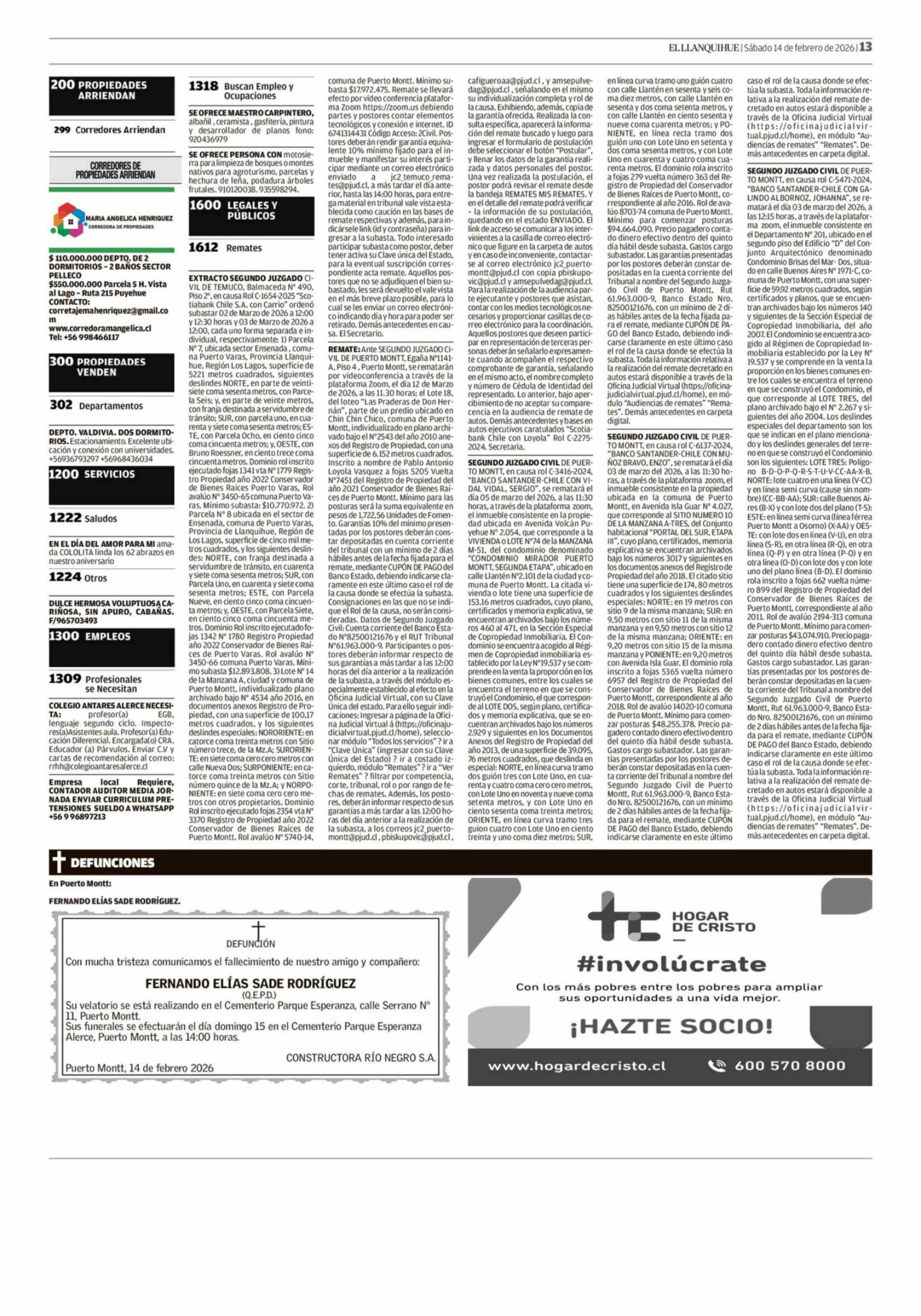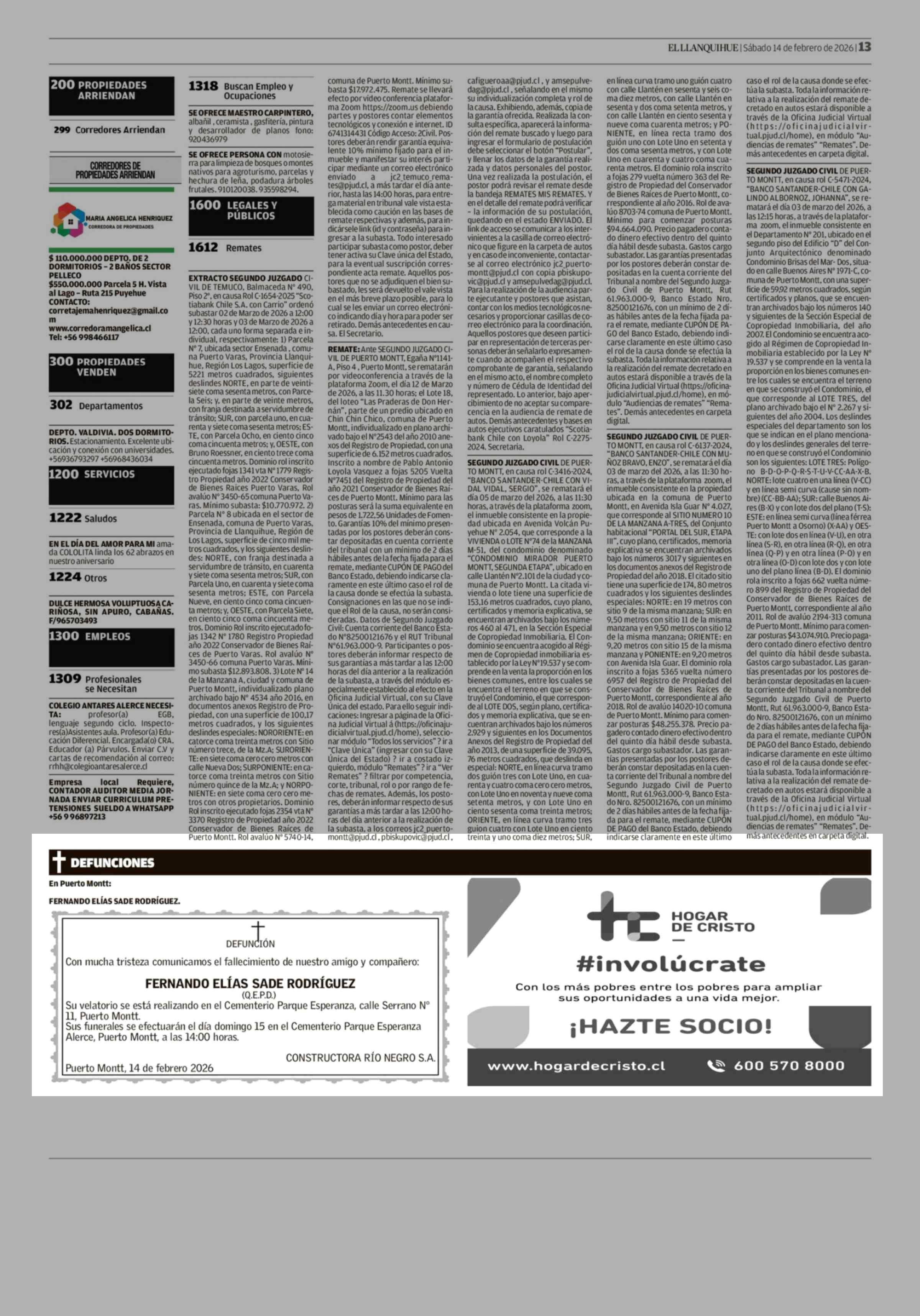 Fecha: 14-02-2026 Sector: Obituario Región: Región de Los Lagos