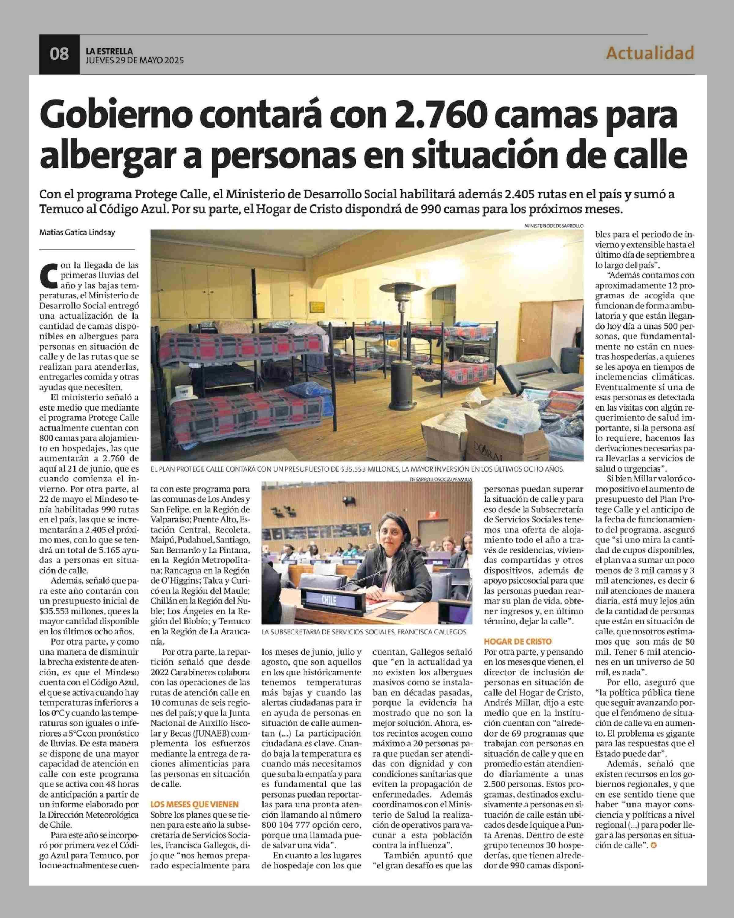 Gobierno contará con 2.760 camas para albergar a personas en situación de calle 29-05-2025 La Estrella de Antofagasta |